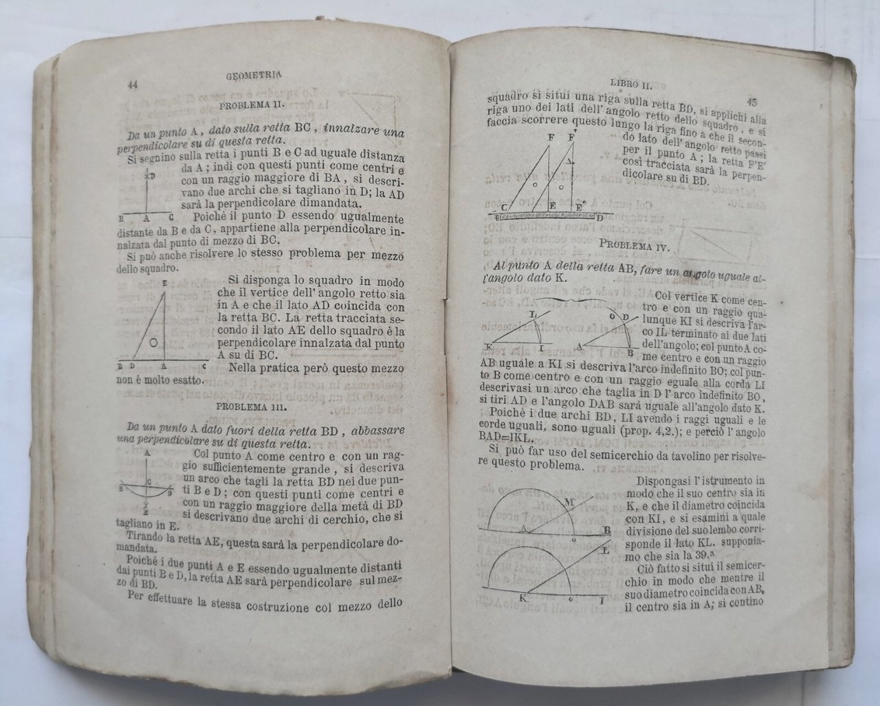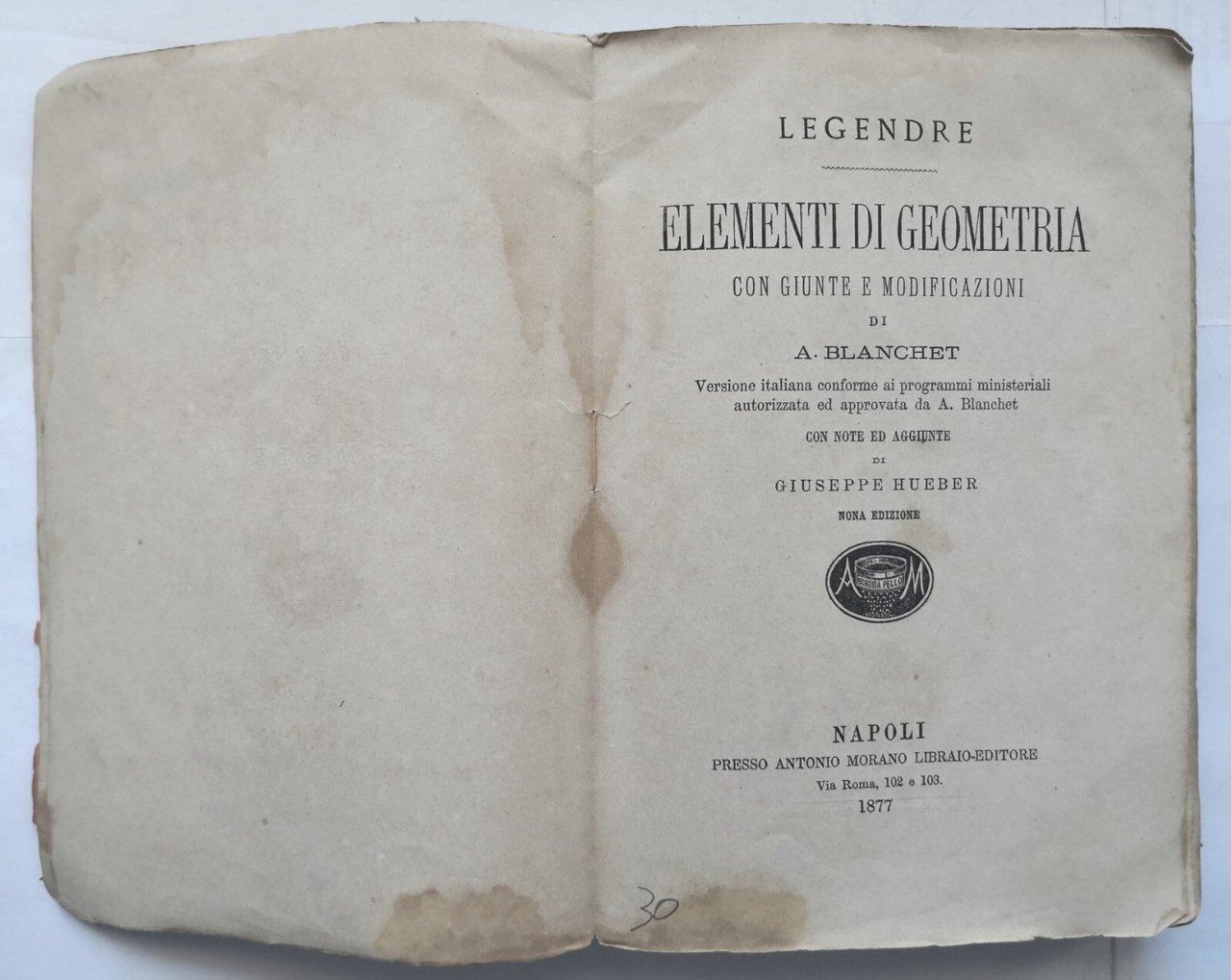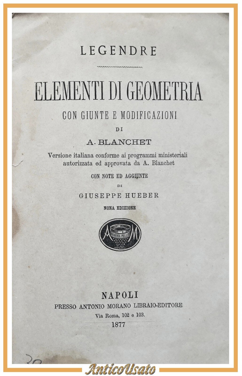 ELEMENTI DI GEOMETRIA con giunte Legendre 1877 Morano libro antico matematica