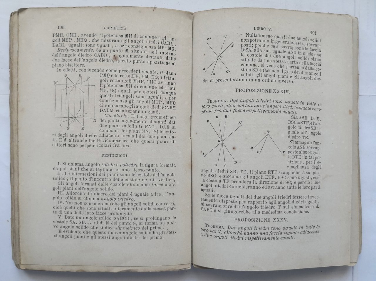 Napoli, Antonio Morano Libraio-Editore, 1877. 310 pagine, figure in bianco e nero nel testo. Copertina non editoriale in brossura muta. Stato di conservazione: buono (pagine ingiallite, firma di appartenenza, copertina sciupata) Libro antico matematica