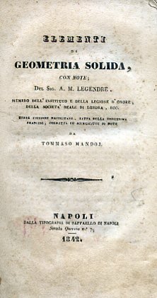 Elementi di geometria solida, con note. Terza edizione napolitana, fatta sulla dodicesima francese; corretta ed accresciuta di note da Tommaso Mandoj
