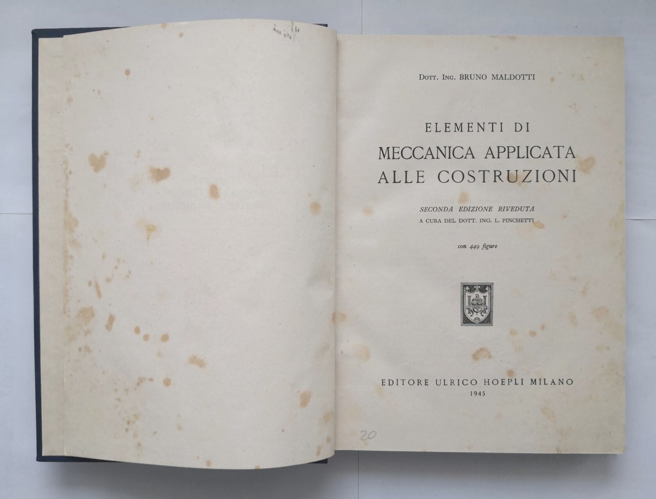 ELEMENTI DI MECCANICA APPLICATA ALLE COSTRUZIONI Bruno Maldotti 1945 Hoepl Libro