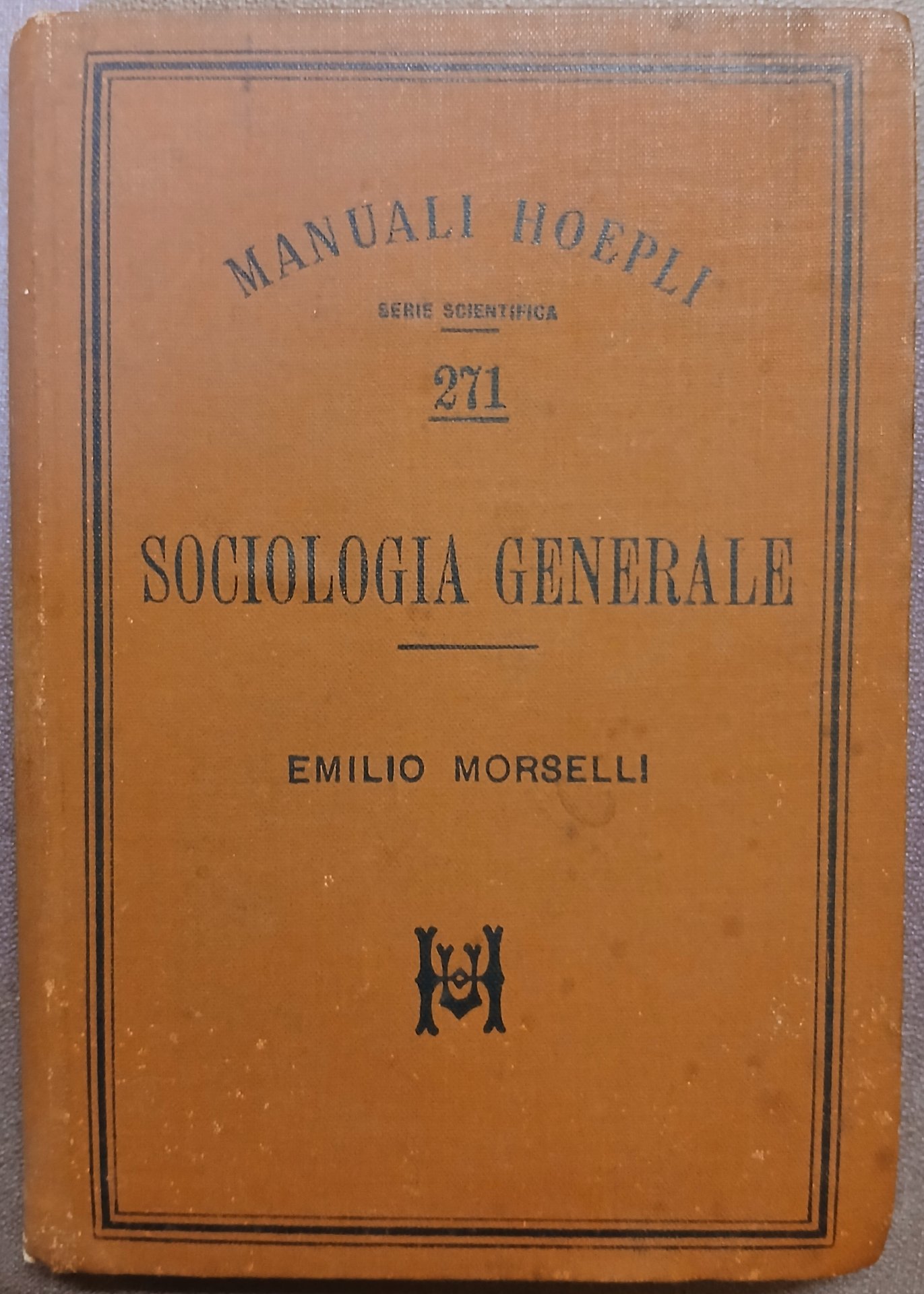 (Sociologia - Manuali Hoepli) In 16°, legatura editoriale in piena tela con titoli in nero al dorso ed al piatto anteriore, guardie in carta edit. , pp. X,(2),170 + pp. 64 di elenco Manuali Hoepli. Prima ed unica edizione. Ottimo stato di conservazione.