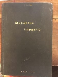 [vt] Cesoie e punzoni, torni, pialle, limatrici, impanatrici, stozzatrici, frese ecc.Con 526 figure disegnate dall'autore. Lievi segni d'usura alla copertina, con titoli in parte cancellati, firma di possesso al fronespizio, buono nel complesso. Pagg. XIV, 653. Tutta tela con tit oro al piatto, mis mm 240x165