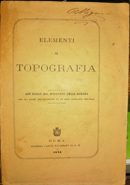 Elementi di topografia approvati dal Ministero della guerra per gli esami dei volontari di un anno aspiranti ufficiali