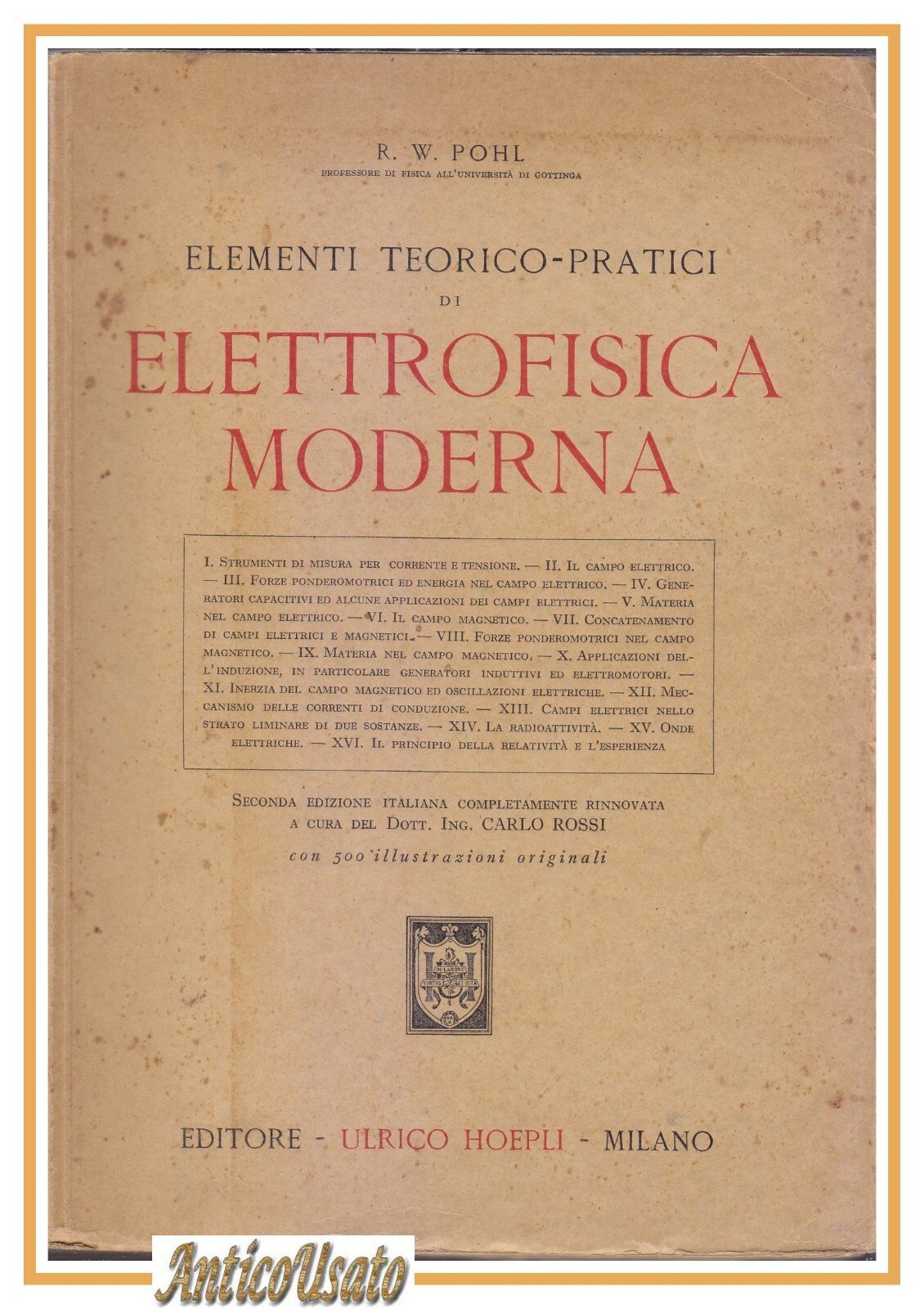 ELEMENTI TEORICO PRATICI DI ELETTROFISICA MODERNA Pohl 1936 Hoepli Manuale Libro