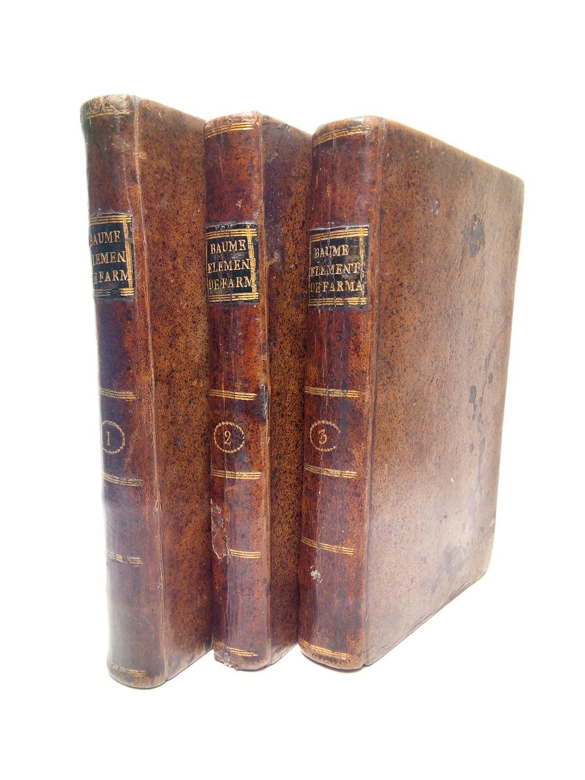 Madrid: Imprenta Real, 1793.- Obra completa en 3 VOLS. (XLII,341; XIV,391; XVIII,490pp.): 3 grabados desplegables + un estado plegado; 4º (20 x 23 cm); Plena Piel Pasta Española Epoca, lomo liso con tejuelo y filetes dorados.* La encuadernación algo fatigada y con algunas manchas del tiempo y del uso. En la hoja de cortesía de cada tomo hay una anotación a tinta de su época, que indica el precio y el propietario. FARMACOLOGIA Y TOXICOLOGIA