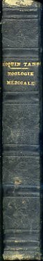 In-16°, pp. XVI, 428 + 36 di catalogo editoriale, legatura del tempo m. pelle con titolo in oro e fregi a freddo al dorso. 122 xilografie n.t. Una firma del tempo al titolo. Un restauro al frontespizio. Fioriture normali. Buon esemplare. Edizione originale. Ampio studio del noto naturalista francese sugli animali utili in vario modo alla medicina così come sugli animali nocivi all'uomo, in particolare i parassiti o le specie zoologiche velenose. Vasto indice alfabetico in fine.