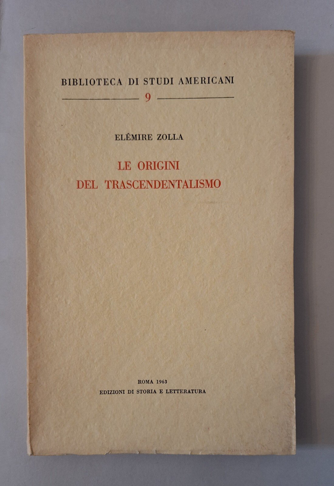ELEMIRE ZOLLA LE ORIGINI DEL TRASCENDENTALISMO ED. DI STORIA LETTERATURA 1963