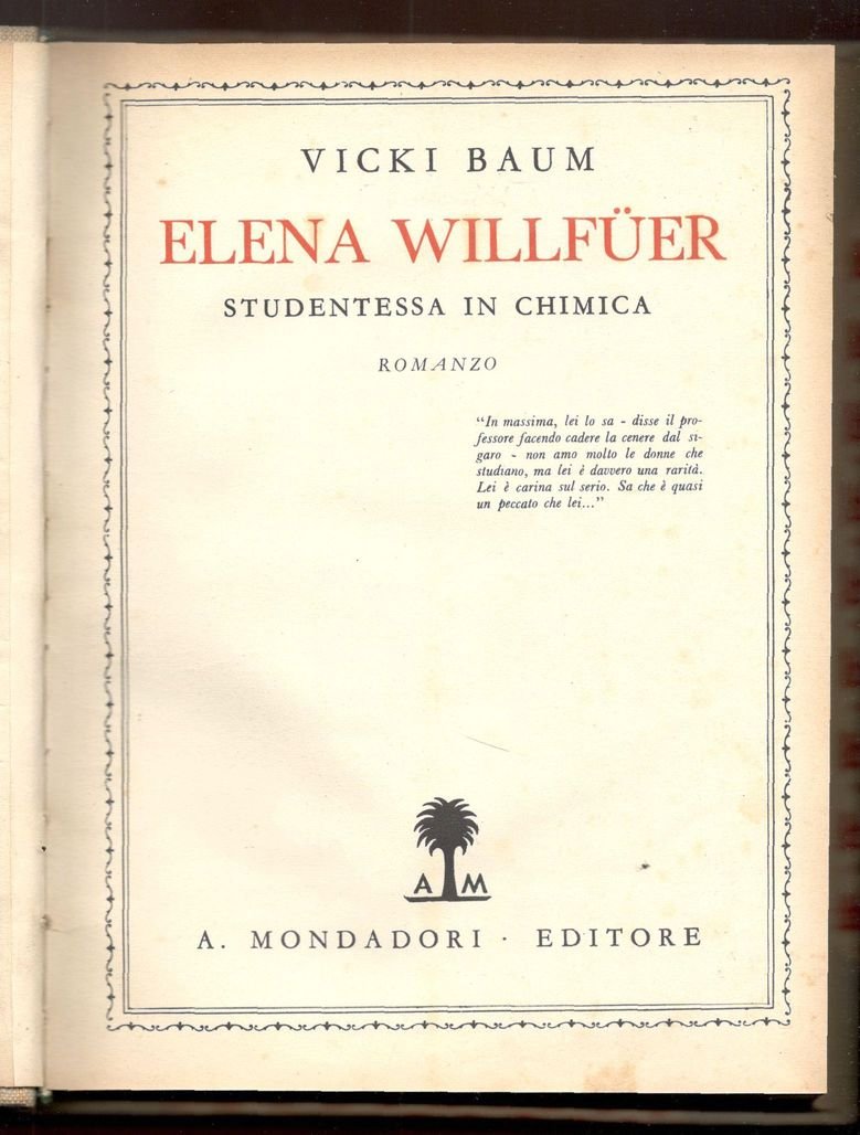 Elena Willfüer studentessa in chimica. Romanzo - La via del palcoscenico