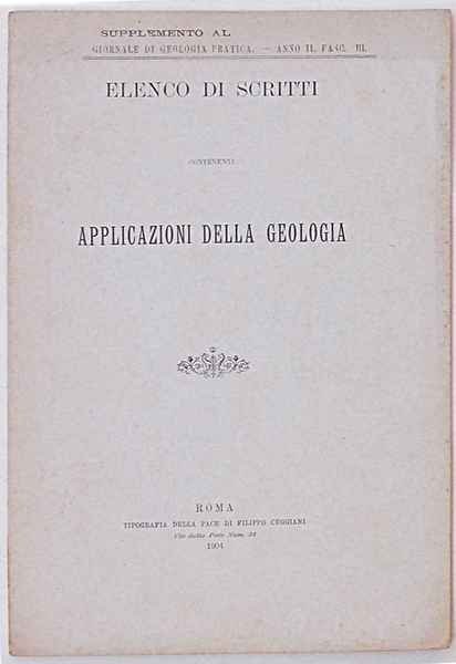 - Roma, Cuggiani per il Giornale di Geologia Pratica, 1904