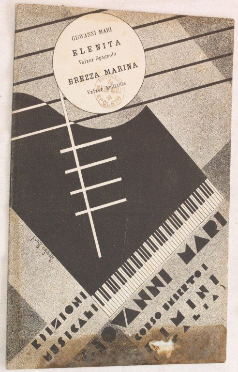 In 8. cm 26,5x18. Pp. 31. Partitura completa per orchestra del 1934 di una canzone. Caratteristica copertina illustrata da Luigi Grandi del 1934. Ex libris sulla copertina. Buone condizioni; usure e strappi al dorso e margine inferiore; fioriture in copertina. a complete score for orchestra not dated but of 1930's. Carachteristic decorated cover of that period. Ex libris in the cover. Good conditionjs, worn spine and lower edge with tears; brownings in the cover.