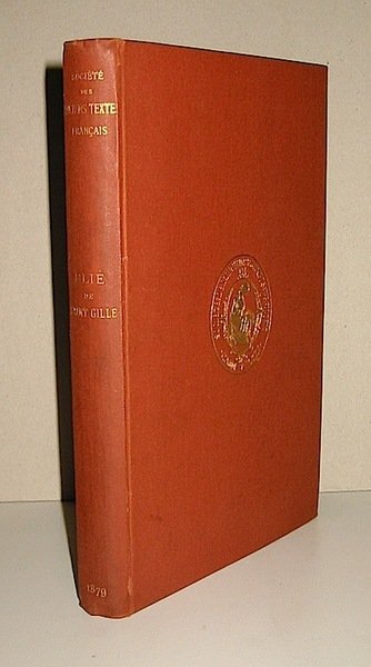 8vo (cm. 22,5), XLIII-203(5) pp. Legatura editoriale in tela rossa con titolo oro al ds. e simbolo impresso al centro dei piatti della ‘Societé des ancients textes français’. Ottimo stato di conservazione. In barbe.
