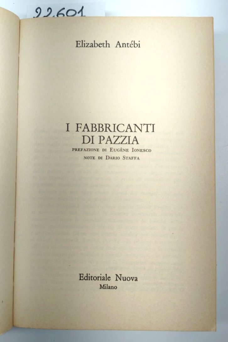 Elizabeth Antebi I fabbricanti di pazzia Editoriale Nuova 1979