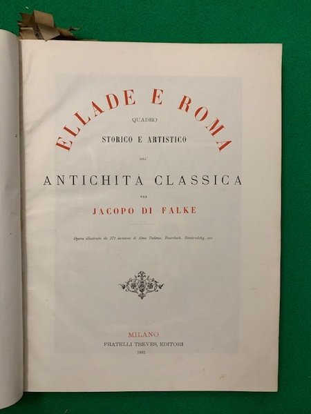Ellade e Roma: quadro storico e artistico dell'antichità classica per Jacopo di Falke. Opera illustrata da 371 incisioni di Alma Tadema, Feuerbach, Siemiradsky, ecc.,