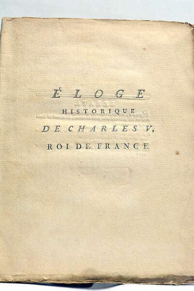 Portrait. VIII. 46 pages. 1 feuillet. (28x21 Cm). Broché. Non-rélié. Rousseurs. Biographie de Charles V, dit le Sage. Elle fut composée par le marquis Charles de Villette qui fut le plus fidèles des admirateurs de Voltaire. Beau portrait en frontispice, gravé par Levasseur d'après Danzel. Titre gravé avec une vignette, trois vignettes et trois culs-de-lampe par Simonnet d'après Eisen. Taches et brunissures.