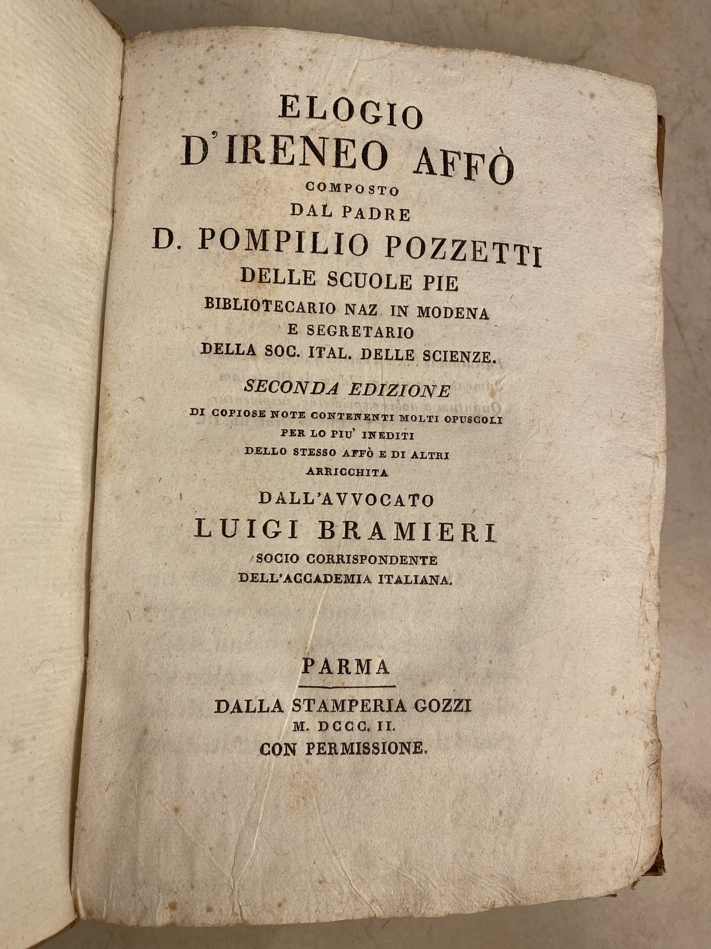 Elogio d'Ireneo Affó composto dal padre D. Pompilio Pozzetti delle scuole pie