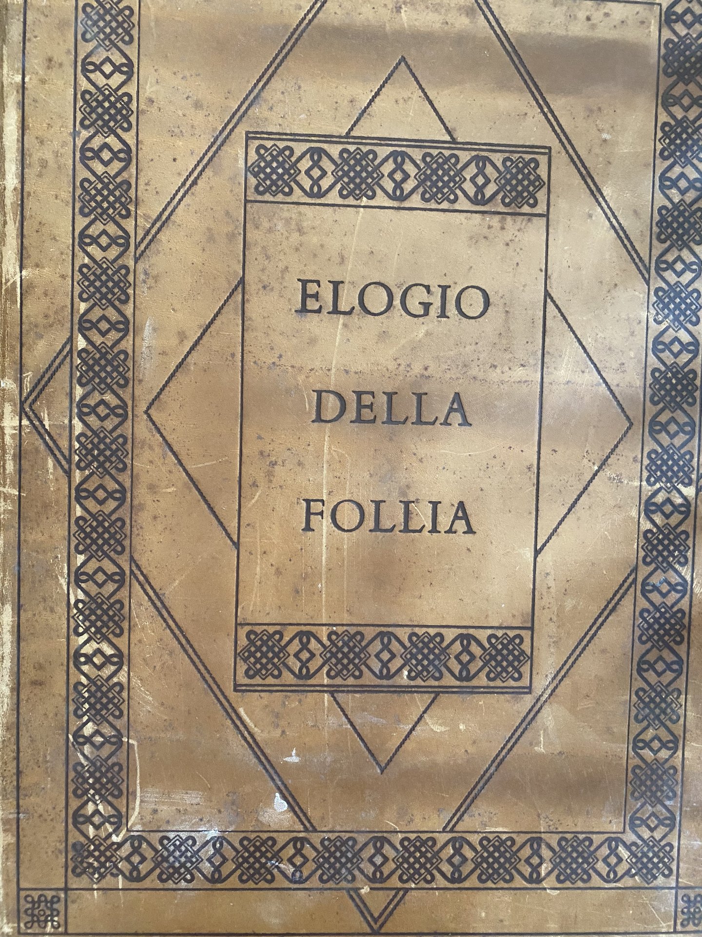 Elogio della follia. Testo originale latino e traduzione italiana con le ottandue vignette marginali disegnate da Hans Holbein il Giovane per l'edizione del 1515 di Basilea. Trad.di L.Testaferrata. Contenente trentuno tavole di Pietro Annigoni. Ediz.su carta filigranata delle cartiere Magnani di Pescia in 2565 esempari numerati e firmati da Pietro Annigoni. La composizione a mano nel carattere Bembo, l'impressione dei testi e la stampa policroma delle tavole e delle vignette sono state curate da M.Mardersteig nellEldec Edizioni Pregiate, 1978