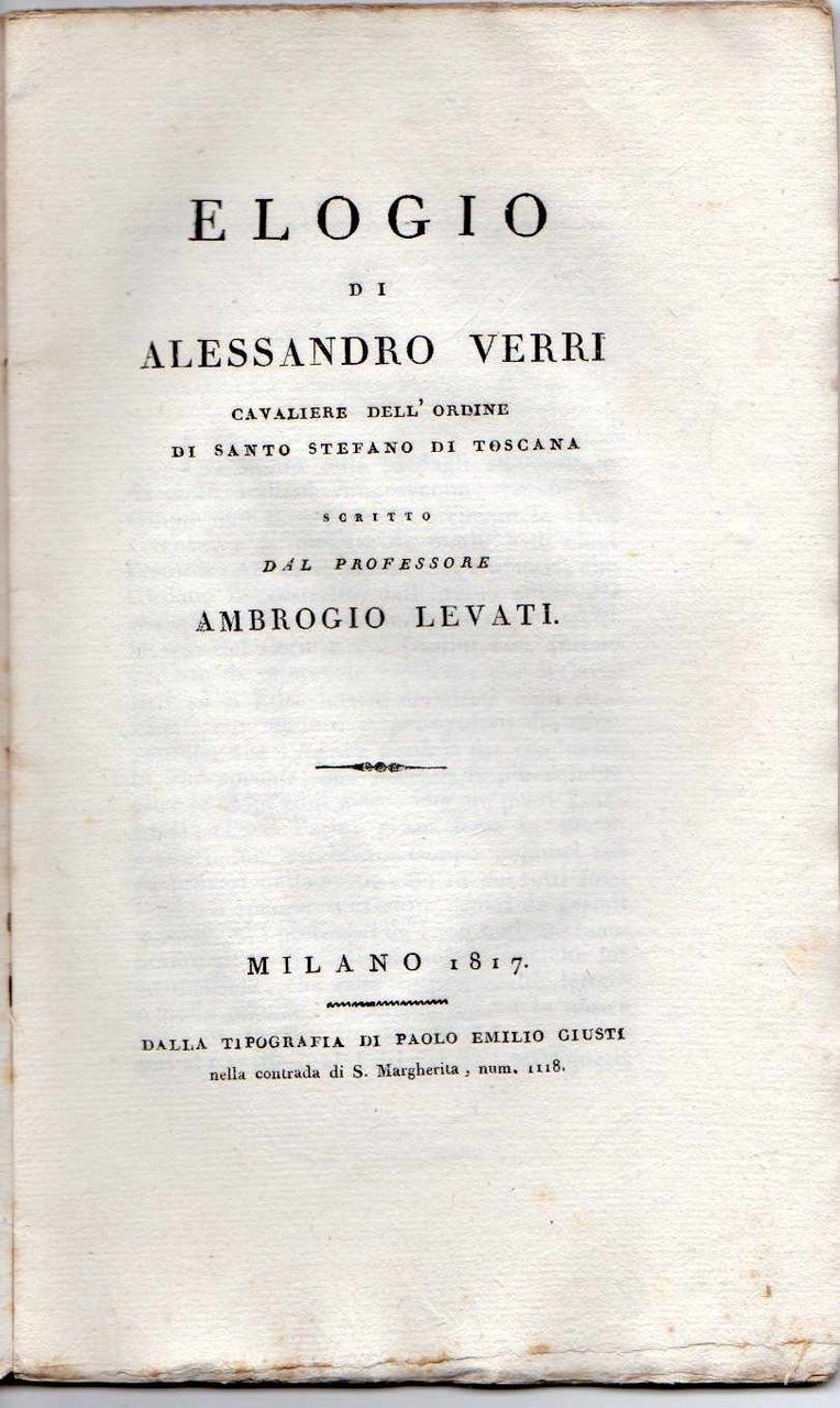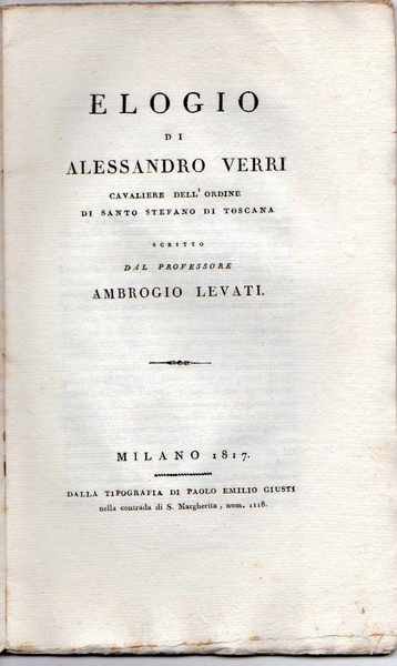 Elogio di Alessandro Verri cavaliere dell'ordine di Santo Stefano di Toscana scritto dal professor Ambrogio Levati
