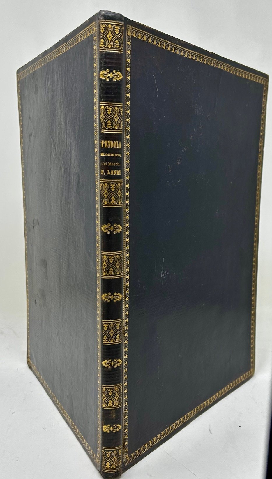 >in-4 ( mm320x215), pp. XII, 67, bella legatura coeva in piena pelle viola scura, titolo in oro e ricchi fregi al dorso, larga bordura neoclassica ai piatti e ai piatti. Edizione originale, in esemplare di particolare pregio per l'eleganza della legatura che ha conservato. Ex-libris della biblioteca dei Fratelli Alessio al contropiatto. La carta, spessa e di qualità, presenta sporadiche tracce di fioritura.