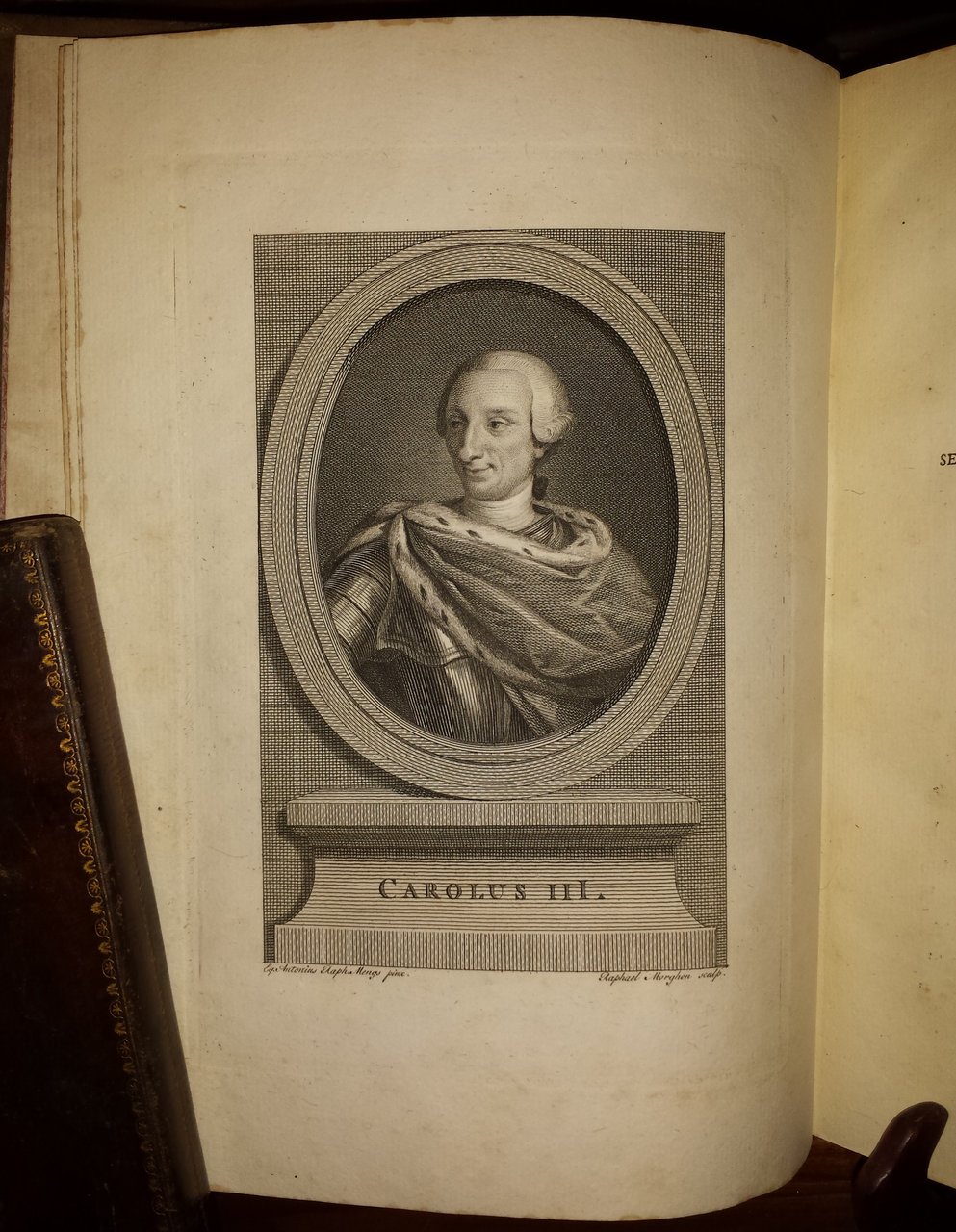 In-4 (26,5 cm) XIII (1) (1) c.(ritratto di Carlo III) 243 (1) frontespizio con monumento funebre. Belle testatine con ritratti di Carlo IV e Ferdinando IV. Tutti i ritratti incisi da R. Morghen. Colophon calcografico. Nome dell'autore alla fine della dedica. Piena pelle, fregi dorati al dorso. Contropiatti rivestiti di carta marmorizzata e tagli spruzzati. Caetani Onorato (1742-1797). Abate, erudito, reggente della cancelleria, di ritorno da un viaggio per l'Italia raccolse libri e manoscritti per ricostituire la biblioteca di famiglia, ebbe folto carteggio con letterati ed eruditi. Nato e morto a Roma. Morghen Raffaello (1761-1833). Incisore, calcografo. Nato a Portici (NA) e morto a Firenze. Bellissimo esemplare. In-4 (26.5 cm) XIII (1) (1) c. (Portrait of Charles III) 243 (1) frontispiece with funeral monument. Beautiful headboards with portraits of Charles IV and Ferdinand IV. All portraits engraved by R. Morghen. Intaglio imprint. Author's name at the end of the dedication. Full leather, golden decorations on the back. Counterplates covered with marbled paper and sprayed cuts. Caetani Onorato (1742-1797). Abbot, scholar, regent of the chancellery, on his return from a trip to Italy collected books and manuscripts to reconstitute the family library, he had extensive correspondence with men of letters and scholars. Born and died in Rome. Morghen Raffaello (1761-1833). Engraver, chalcographer. Born in Portici (NA) and died in Florence. Beautiful specimen.