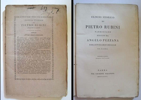*Elogio storico di Pietro Rubini Parmigiano scritto da Angelo Pezzana bibliotecario ducale in Parma. Seconda edizione.