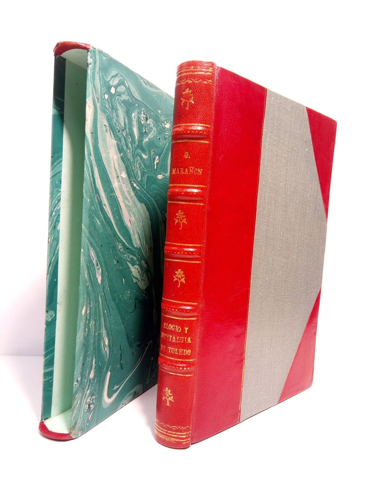 2ª Ed. muy aumentada.- Madrid: Espasa-Calpe, 1951.- 200 p.: Láminas fuera de texto; 4º (22,5 x 15,5 cm); Enc. en Media Piel chagrén a puntas, lomo dorado y filetes dorados en ambas tapas, Estuche.* Excelente estado. Dice el autor en el prólogo a esta 2ª Ed.: A los ensayos que formaban la primera edición de este libro, se han unido otros. Tienen fechas distintas, pero les une la misma emoción. Alguno de aquella edición ha pasado a otro volumen. En la redacción de los Ensayos primitivos, hecha sin libros delante, había algunos errores, hijos de mi mala memoria, que ahora van rectificados. Toledo, julio 1951.Esta obra, aunque lleve el mismo título, por su total renovación, es en sí misma una primera edición. CASTILLA-LA MANCHA