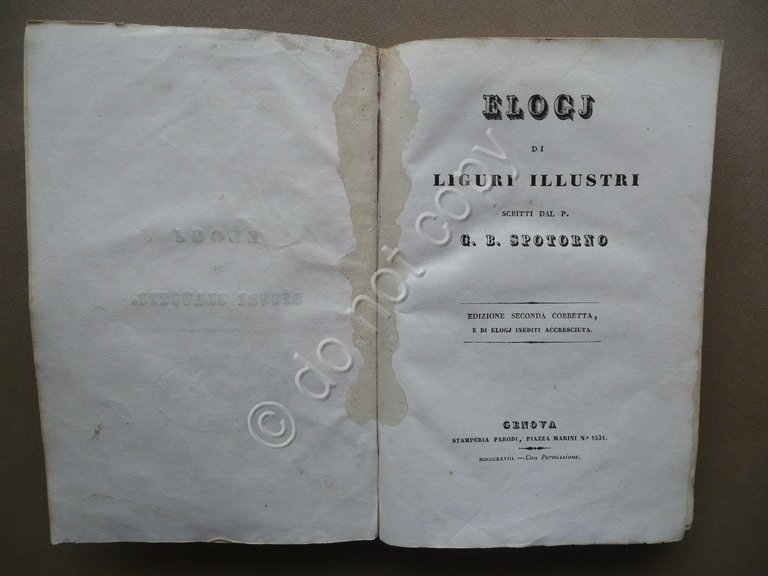 Elogj di Liguri Illustri Scritti dal G.B. Spotorno Stamperia Parodi Genova 1828