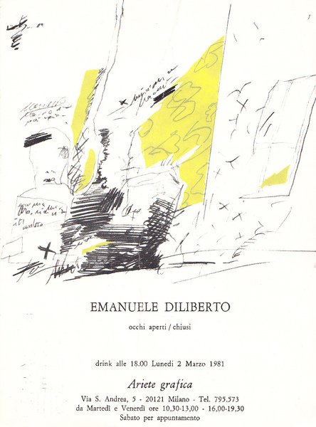 *Emanuele Diliberto. Occhi aperti, chiusi. Galleria dell'Ariete Grafica Milano, 2 marzo 1981. Invito.