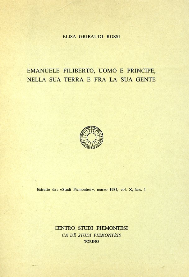 Emanuele Filiberto, uomo e principe, nella sua terra e fra la sua gente. Estratto da: 'Studi Piemontesi', marzo 1981, vol. X, fasc. 1