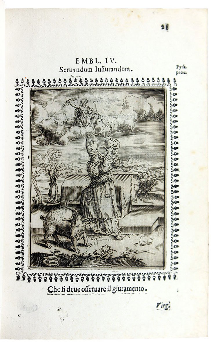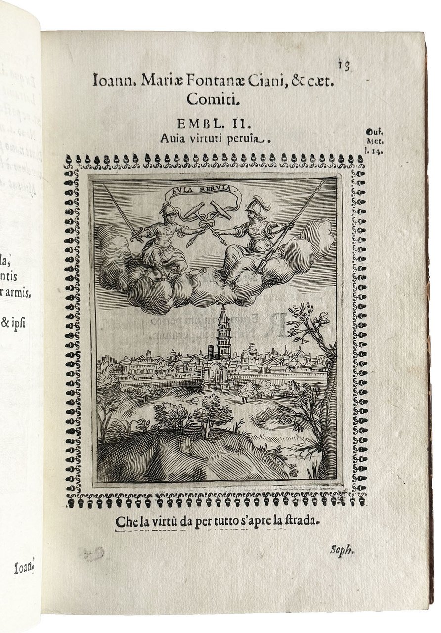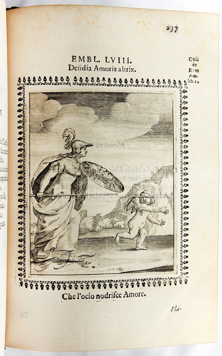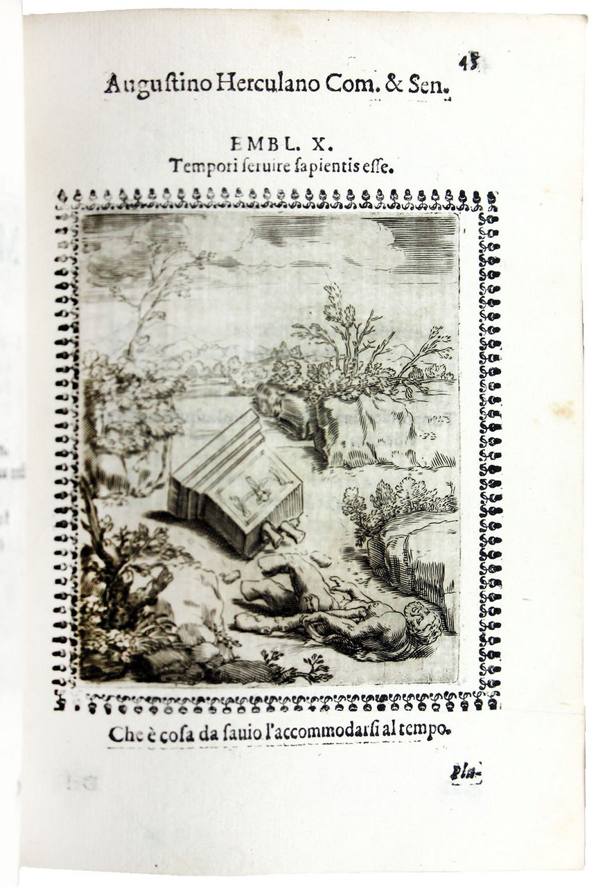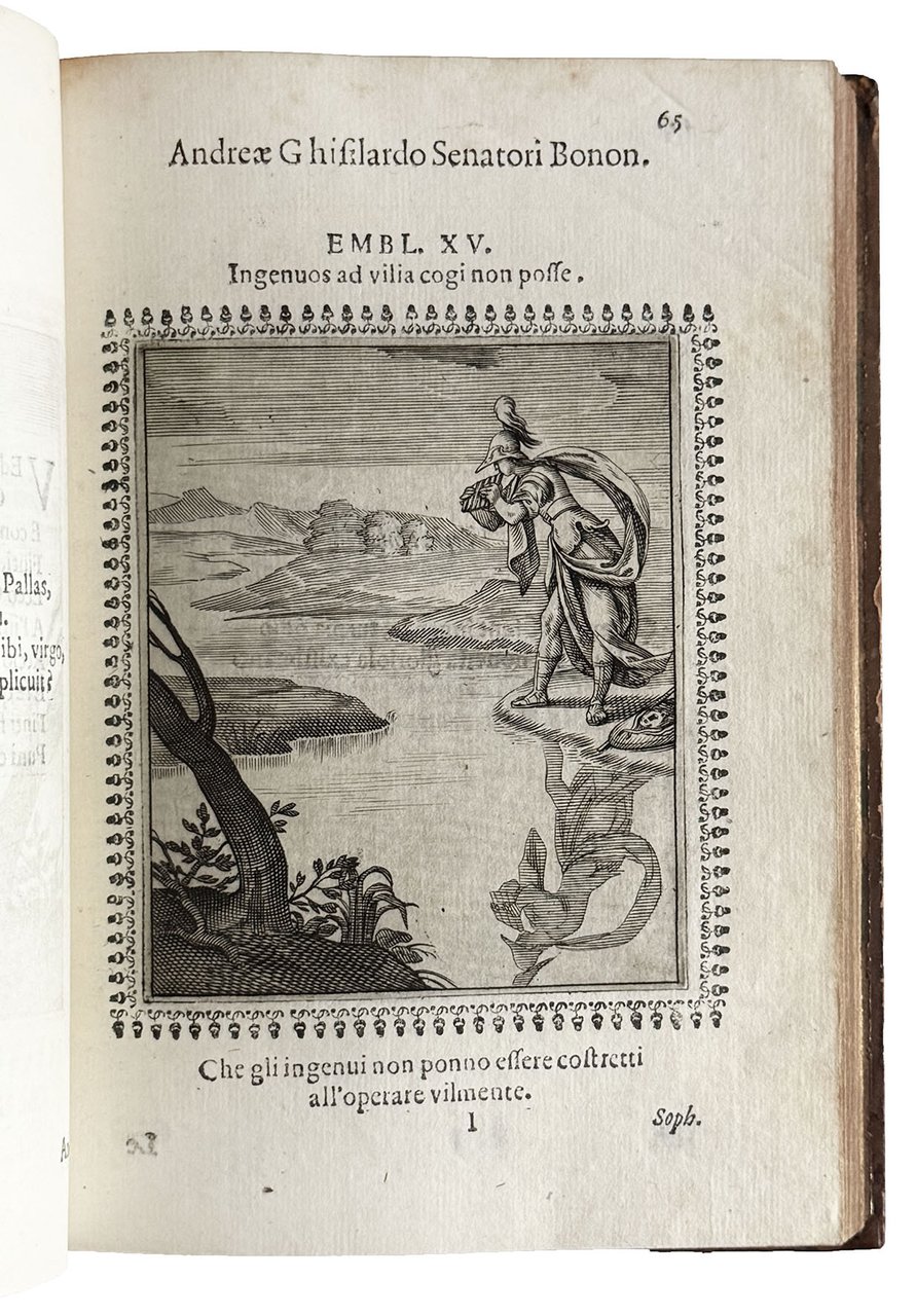 J. Landwehr, Romanic emblem books, Utrecht, 1976, no. 496; Catalogo unico, IT\ICCU\VEAE\002254; M. Praz, Studies in seventeenth-century Imagery, Rome, 1975, p. 409; Cicognara, no. 1913; A. Sorbelli, Storia della stampa in Bologna, Bologna, 1929, p. 140; L. Frati, Opere della bibliografia bolognese, Bologna, 1888-1889, no. 7447; L. Bolzoni & B. Allegranti, Con parola brieve e con figura: libri antichi di imprese e emblemi, Lucca, 2004, p. 48.