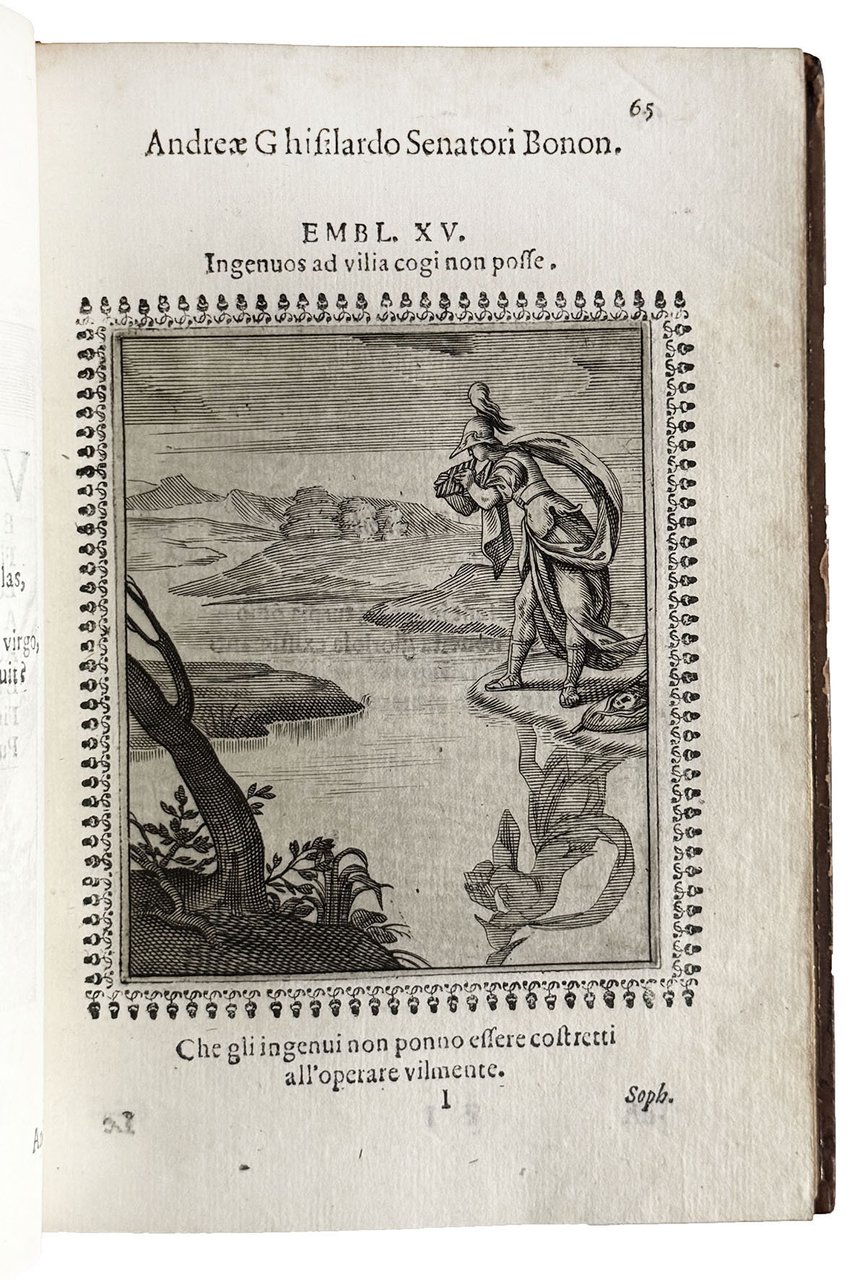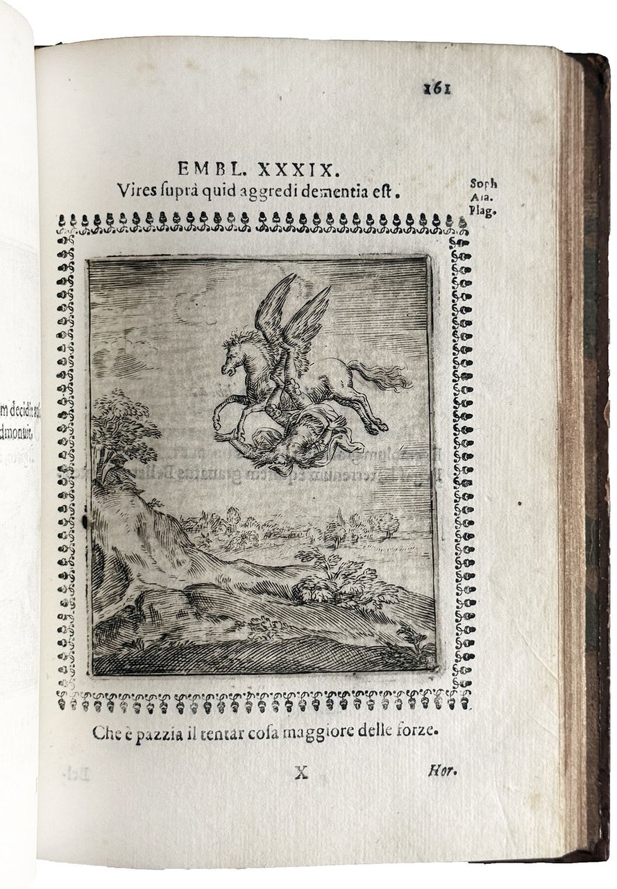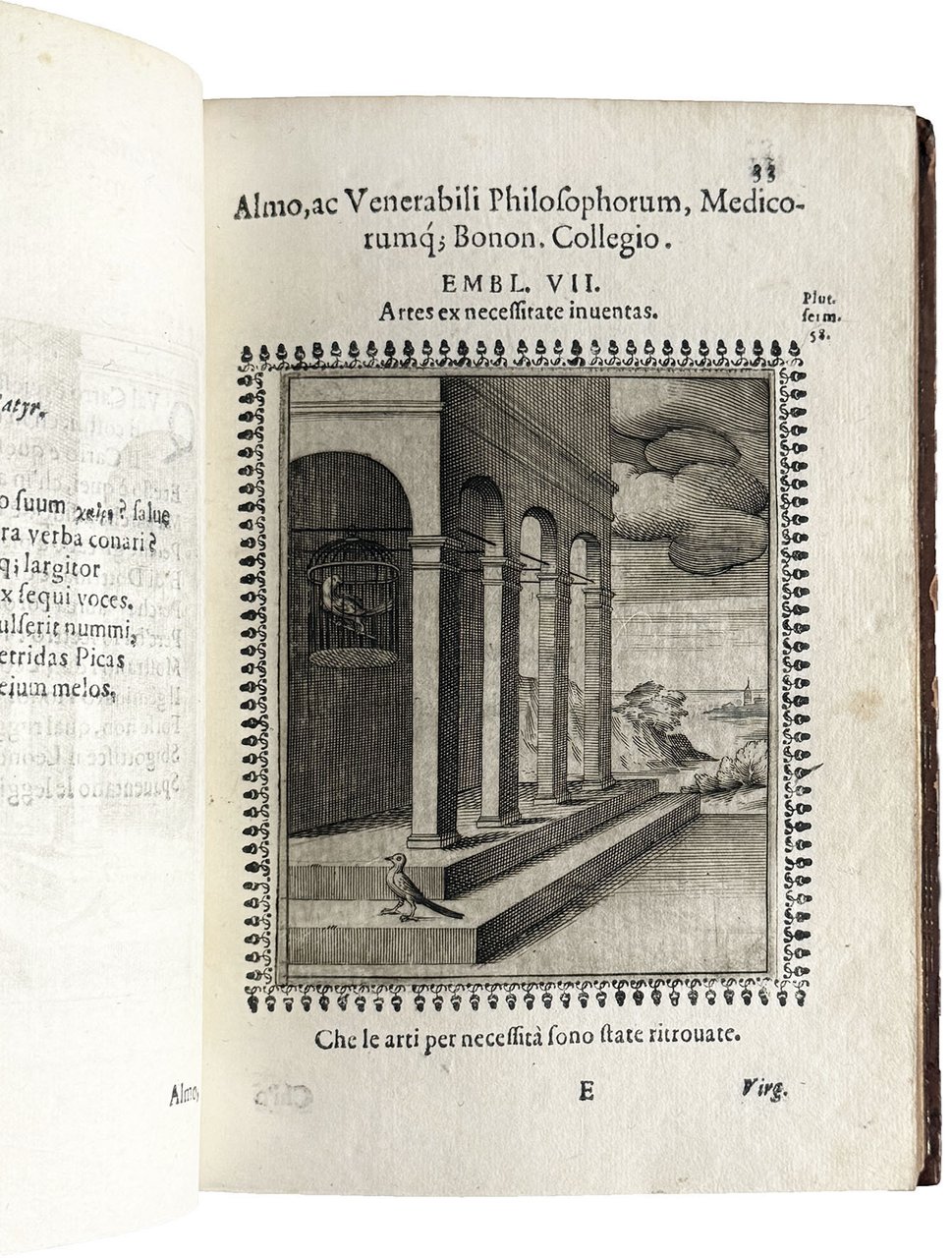First edition of this lively and richly illustrated emblem book, which often offers an interesting iconography on contemporary life in Bologna.