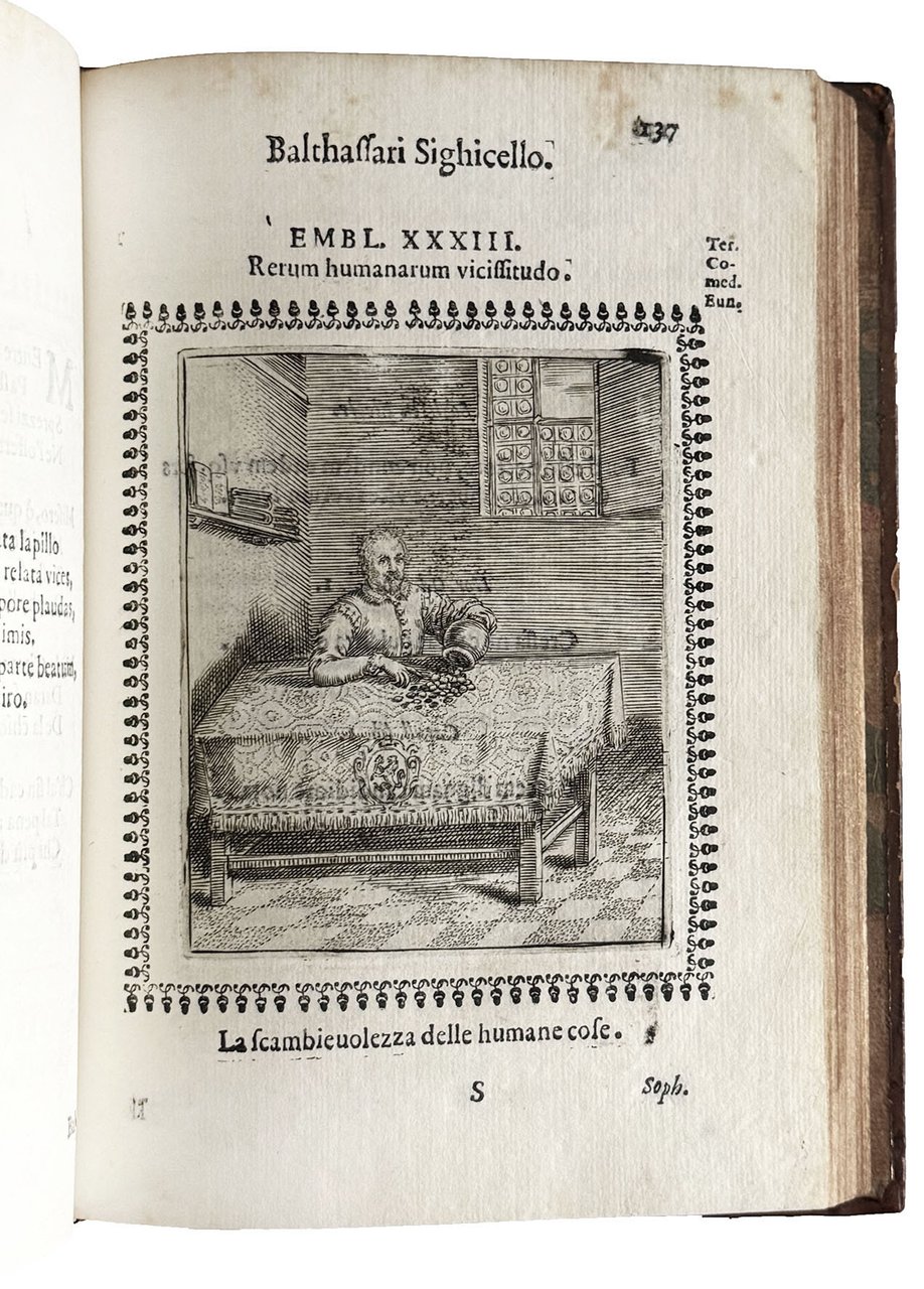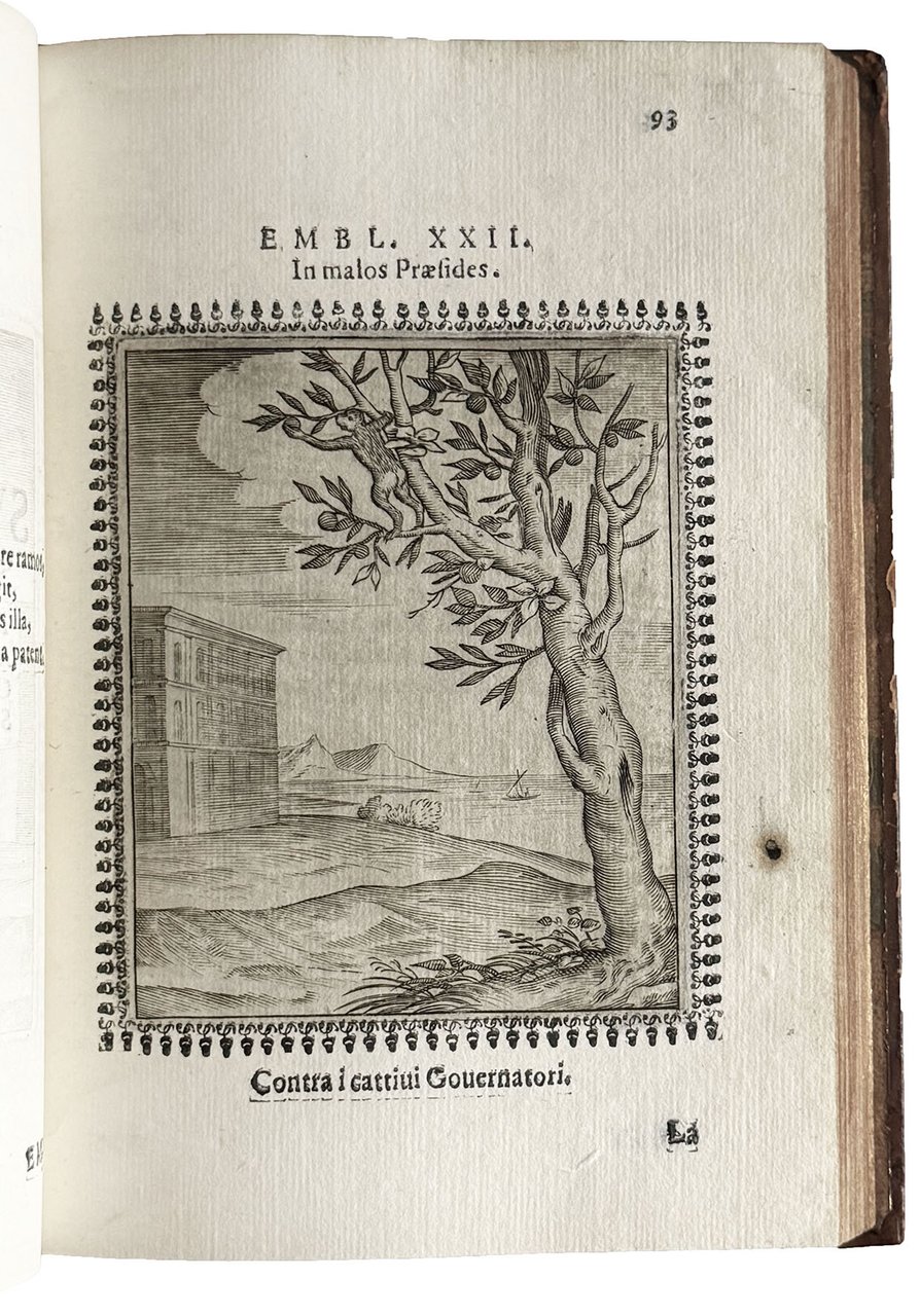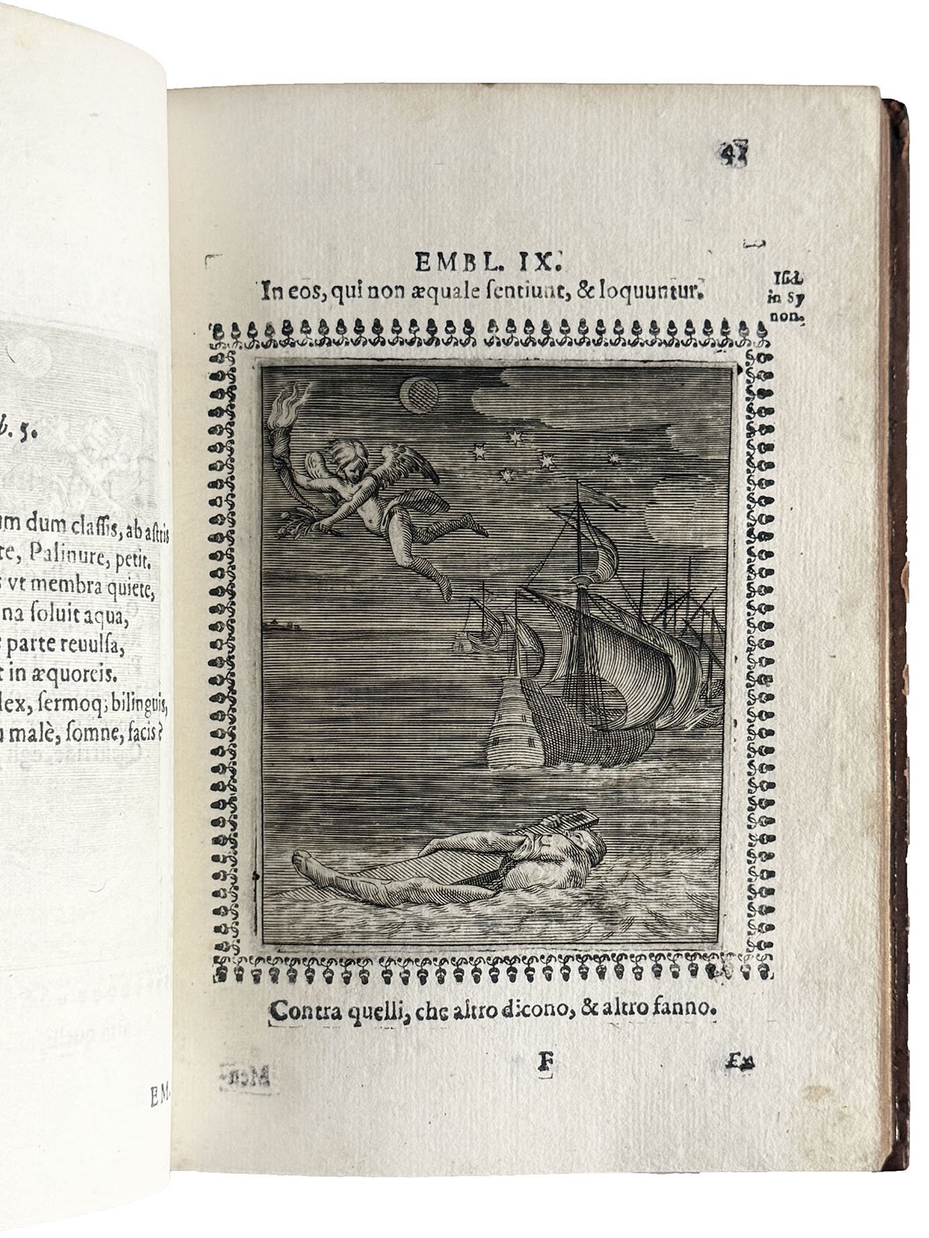 First edition of this lively and richly illustrated emblem book, which often offers an interesting iconography on contemporary life in Bologna.