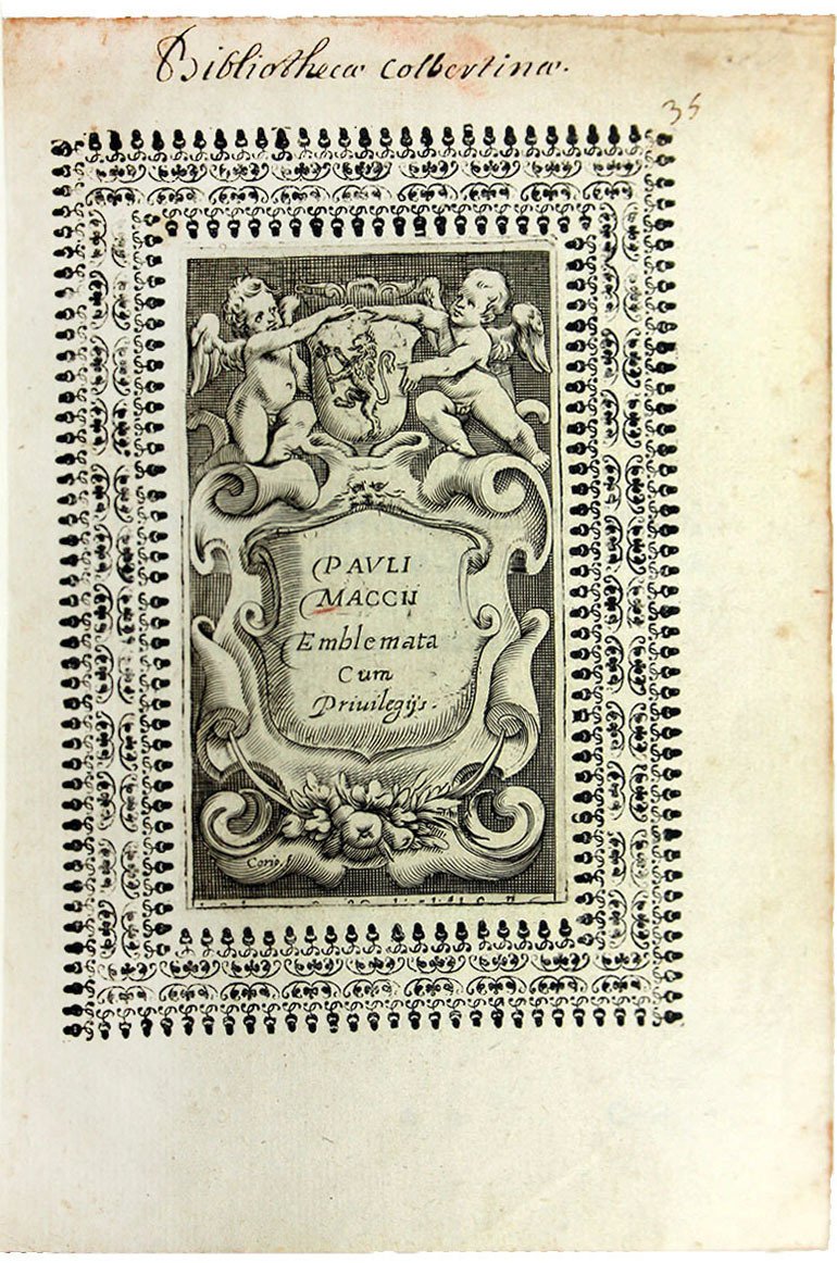 Giovanni Battista Coriolano and Oliviero Gatti, pupils of G.L. Valesio, are responsible for the majority of the illustrations. The engraved title and 26 of the emblems were engraved by Coriolano. The dedicatory plate and 52 of the emblems are the work of Gatti. The remaining plates were engraved by Agostino Parisini after Florio Maccio, a pupil of Lodovico Carracci.
