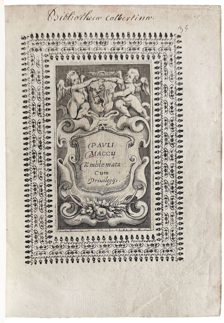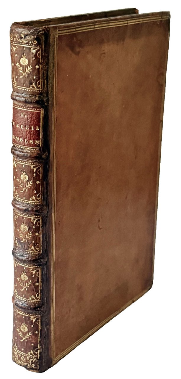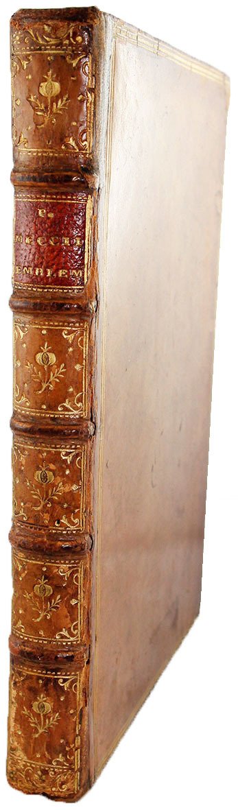 4to (mm 203x140). 331, [5] pp. With frontispiece, portrait of the Madonna di San Luca and 81 full-page emblems, all engraved by Giovanni Battista Coriolano (1595-1649), Oliviero Gatti (1598-1646) and Agostino Parisini (fl. 1625-1636) after drawings by Florio Macchi and Giovanni Battista Coriolano. 18th-century full calf, panels within a triple fillet in gilt, spine with five raised bands and gilt title on morocco label, marbled endleaves, gilt edges (joints and top of the spine partially restored). Provenance: Jean-Baptiste Colbert (1619-1683), minister of finances of France under King Louis XIV, also renown for his celebrated library which was sold at Paris in 1728 (his ownership's inscription on the title-page); Richard Heber (1773-1833), English book-collector and founder of the Roxburghe Club of bibliophiles, whose library of 105,000 volumes was sold by auction at London in 1835 (his stamp on the front flyleaf); and Beckford Library (pencil note on the front flyleaf, dated Dec. 20, 1882). Small repair to the lower margin of pp. 121/122 not affecting the text, otherwise a very good, fresh copy.