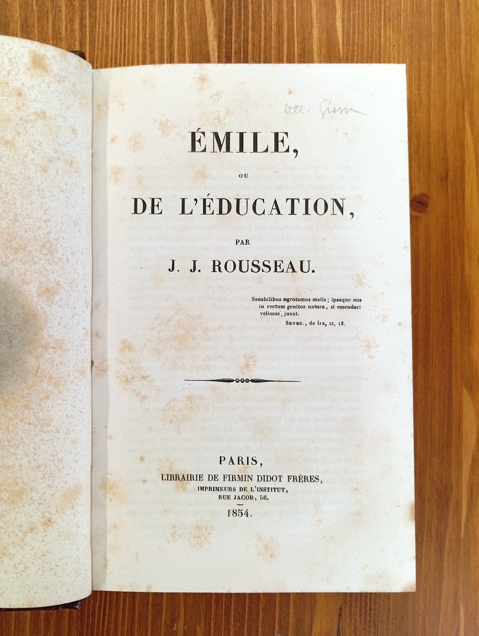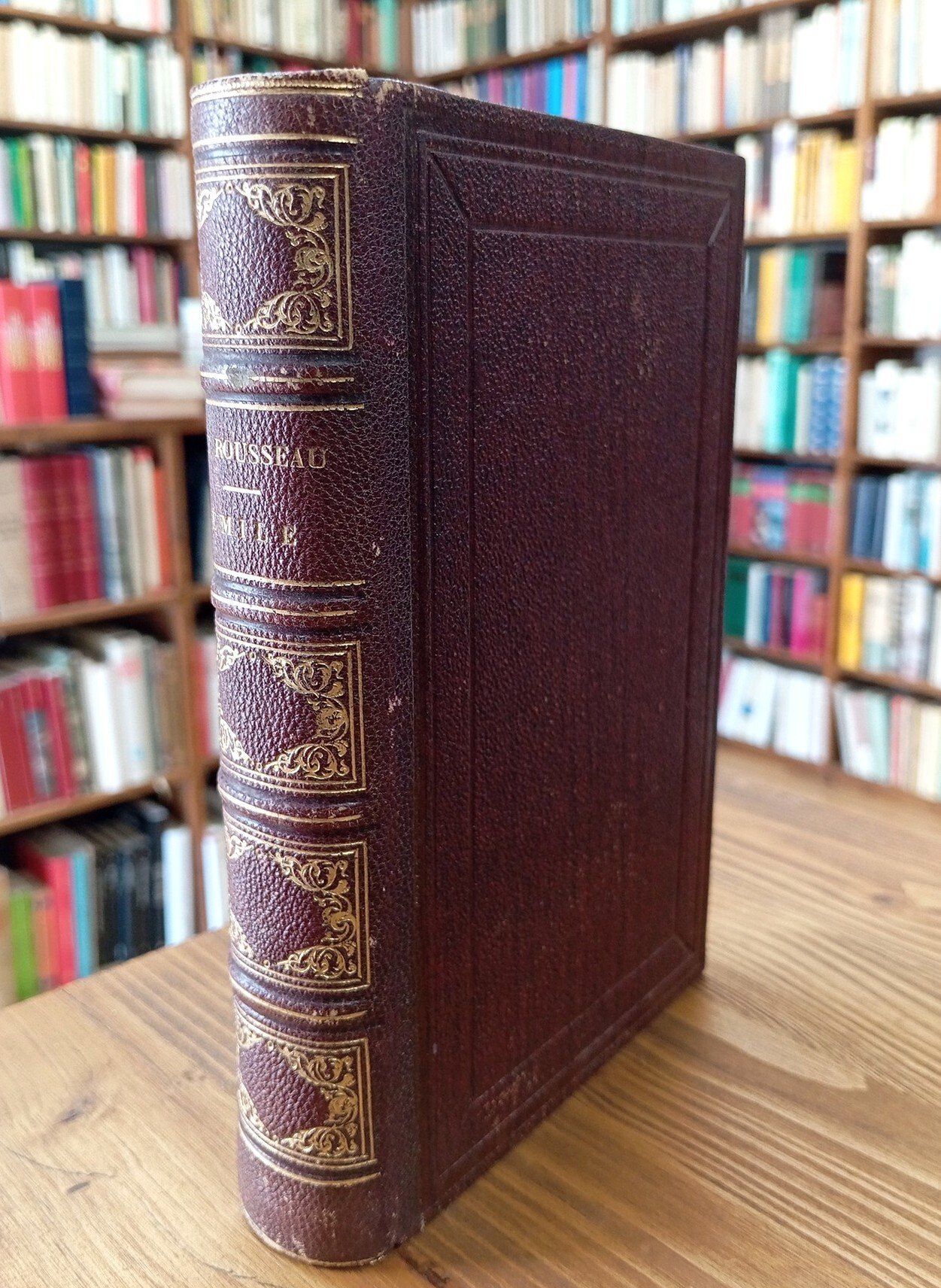 Volume rilegato in solida tela marrone con titolo e cornici in oro al dorso, 643 pagine; all'antiporta, protetto da velina, bel ritratto inciso di Rousseau ["Hopwood sculp.", d'après le buste de Houdon]. Diffuse ma tenui fioriture alle carte, nel complesso esemplare in ottimo stato di conservazione.