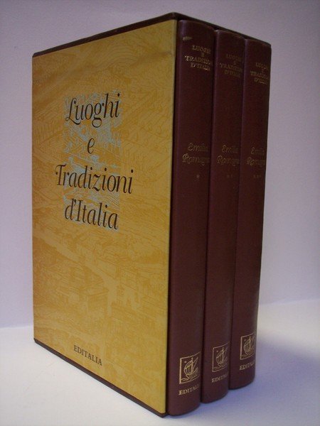 3 voll. in 4°; pp. 438, 451, 520 con numerose illustrazioni in nero e colore nel testo; legatura editoriale in mezza pelle con piatto illustrato e titoli oro al dorso; cofanetto editoriale illustrato in mezza pelle. Come nuovo.<BR>Vol 1. Emilia Romagna occidentale<BR>Testi di Giuseppe Adani .et al. ( Mara Bernabò Brea, Manuela Catarsi Dall'Agio, Marzio Dall'Acqua, Pier Maria Paoletti, Filiberto Molossi, Sauro Rossi.)<BR>Indice: Bobbio; Piacenza; Fidenza; Parma; Castelli del Parmense; Reggio nell'Emilia; Centri del Reggiano; Correggio; bibliografia generale e indice dei luoghi.<BR>Vol. 2. Emilia Romagna centrale e nordadriatica.<BR>Testi di Ugo Berti Arnoaldi.et al. (Luigi Malnati, Jacopo Ortalli, Giuseppe Sassatelli.)<BR>Indice: Carpi; Modena; Bologna; Cento; Ferrara; Comacchio; Imola; bibliografia generale e indice dei luoghi.<BR>Vol. 3. Emilia Romagna meridionale<BR>Testi di Roberto Balzani .et al. (Jacopo Ortalli, Sara Santoro Bianchi.).<BR>Indice: Ravenna; Lugo; Faenza; Forlì; Cesena; Rimini; San Marino; bibliografia generale e indice dei luoghi.<BR>3 voll. in 4°; pp. 438, 451, 520 con numerose illustrazioni in nero e colore nel testo; legatura editoriale in mezza pelle con patto illustrato e titoli oro al dorso; cofanetto editoriale illustrato in mezza pelle.<BR>Come nuovo.
