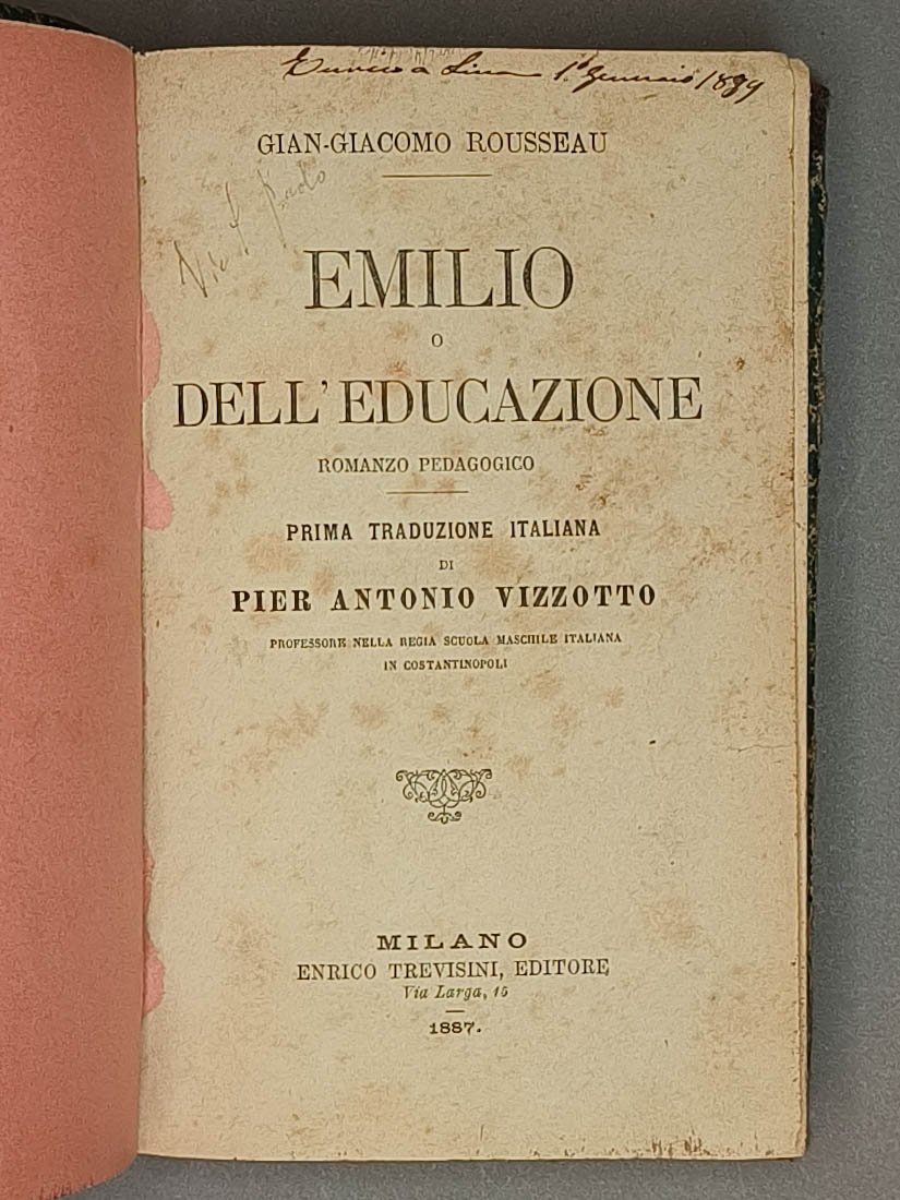 Jean Jacques Rousseau, Emilio o dell'educazione, Milano, Enrico Trevisini, 1887.