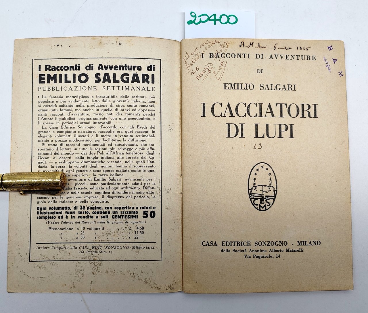 Emilio Salgari I cacciatori di lupi Sonzogno 1940