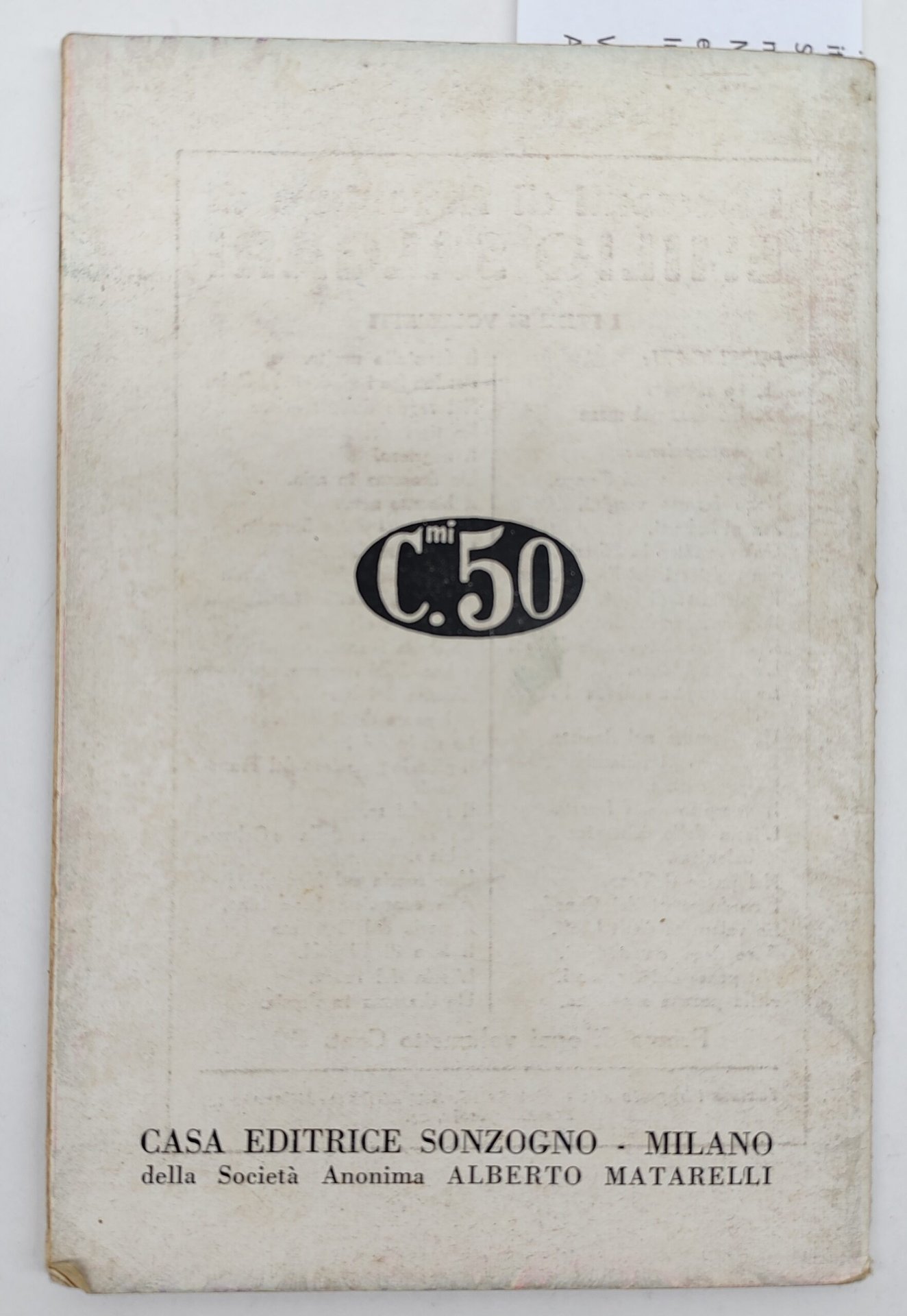 Legatura morbida editoriale con aloni e sporcizie ai piatti, due pieghe agli angoli del piatto anteriore, tagli bruniti, firma di possesso e timbro al frontespizio, pagine interne leggermente brunite, a pagina 31 una piega all'angolo superiore esterno numero pagine 32 dimensioni cm 17,5 * 11,7 * 0,30