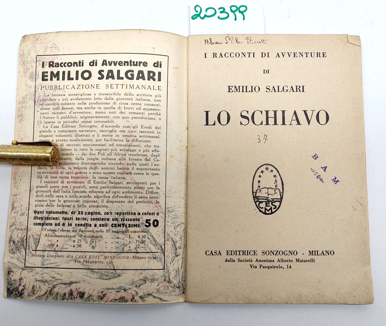 Emilio Salgari Lo schiavo racconto illustrato Sonzogno 1940