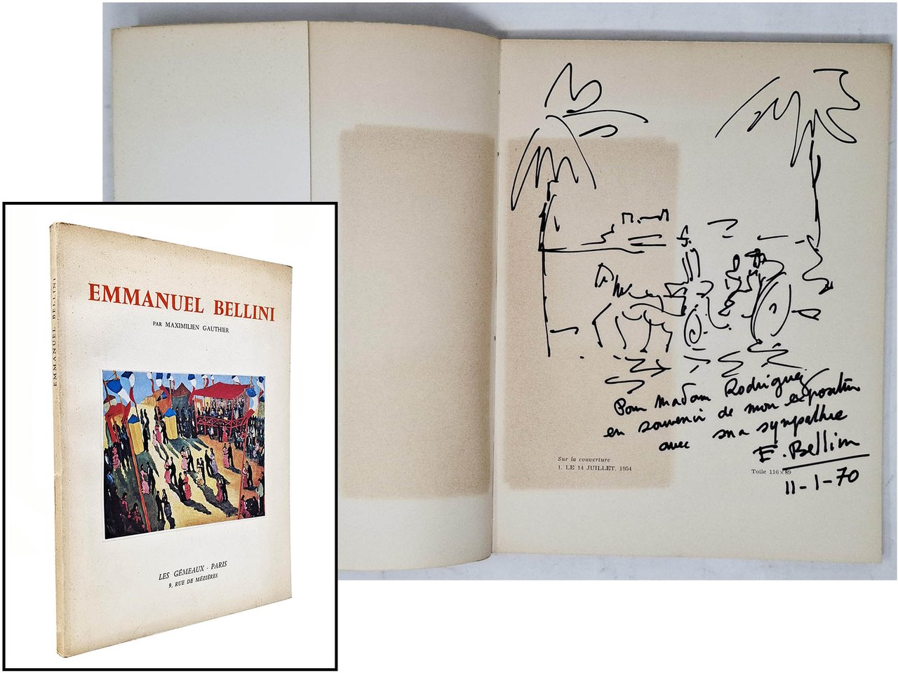 Opera a tiratura limitata (1.000 esemplari). Esemplare non numerato (solo 150 su mille erano numerati). Imprimerie Devaye, Cannes. 30 juillet 1960. Photos en coleurs de A. Costantini et Lacoste. Photos en noir de A. Fernandez, Cauvin et Franjus. Lingua del testo: francese. Pagine non numerate: [27] + 32 tavole in nero + [6]. Formato: 19 x 25 cm circa. A rendere unico questo esemplare è la presenza di un disegno originale, realizzato a pennarello nero sulla prima pagina, firmato 'E. Bellini' e datato '11 - 1 - 70'. Stato di conservazione: un'ombra (lasciata presumibilmente da un qualche foglietto conservato nel volume in passato) tra il retro della copertina anteriore e la prima pagina sulla quale è stato realizzato il disegno ma, nel complesso, decisamente buono. Copertina editoriale flessibile con sovraccoperta applicata (per scelta editoriale alla copertina) con immagine a colori applicata sul lato anteriore. Volume ricco di immagini (tavole a colori applicate alle pagine, tavole in nero a piena pagina e illustrazioni in nero nel testo).