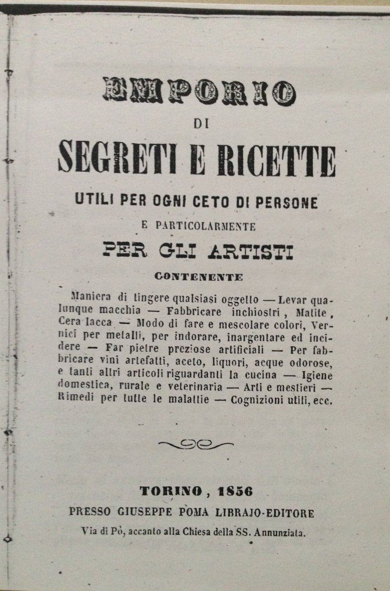 Emporio di Segreti e Ricette per Gli Artisti Fotocopia Poma Libraio Torino 1856