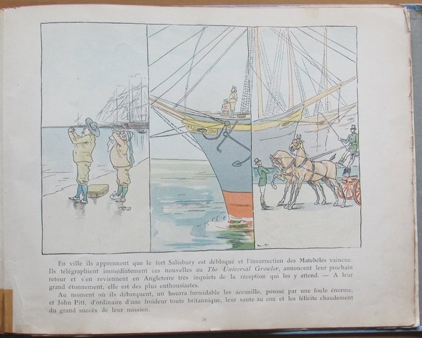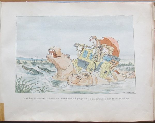 Ill. a col. a tutte la pag. di Vimar. 33x25; pp.40 + 4 non num. di prefaz. di Grosclaude. Cart. edit. con ill. a col. alla cop. e titoli. Le cerniere interne, in basso alle pagine, sono quasi tutte rinforzate e qualche pagina presenta riparazioni ai tagli alti o bassi che non ledono le immagini. Alcune fioriture del tempo a qualche pagina e mancanza delle pag. 8, 16, 19, 24. Ciò nonostante libro interessante e di difficile reperibilità. Discreto. ,