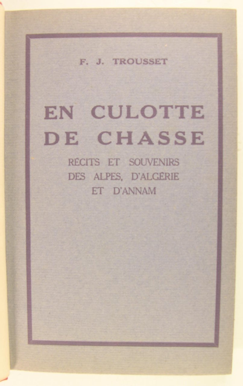 En culotte de chasse - Récits et souvenirs des Alpes d'Algérie et d'Annam.