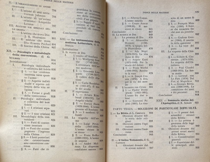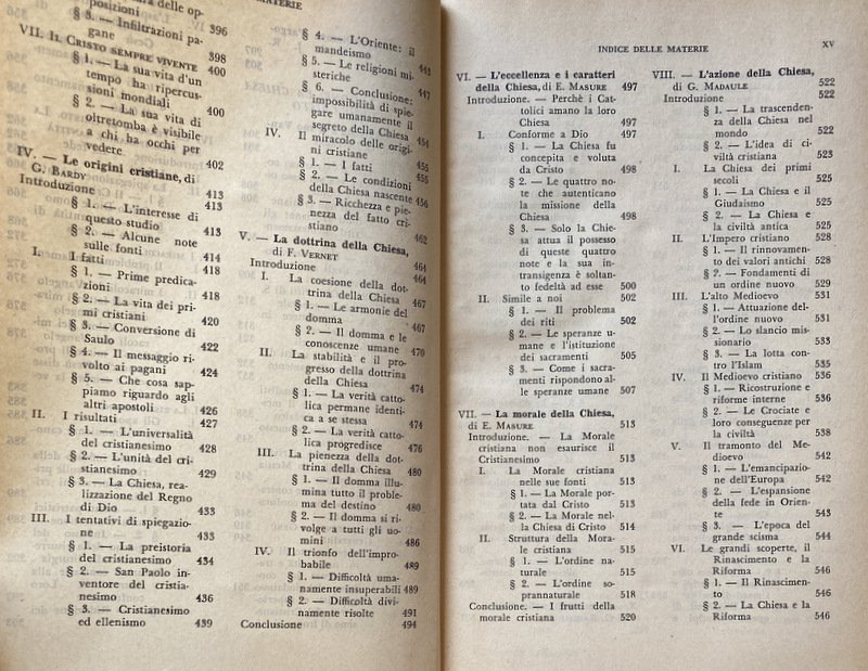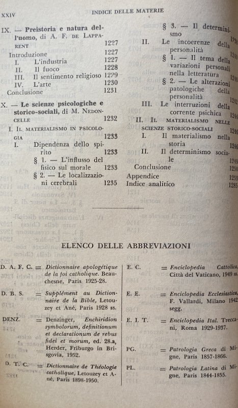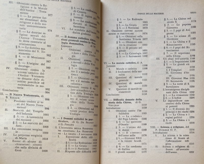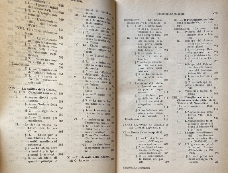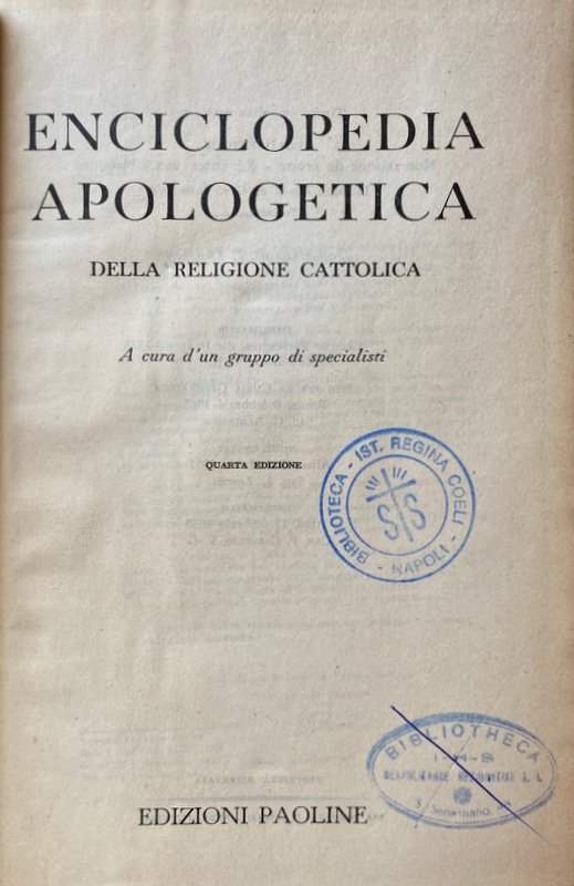 Soggetti: Dizionario, Enciclopedie, Manuali, Riferimento, Consultazione, Bibliografia, Studi religiosi, Teologia, Religione, Cristianesimo, Cattolicesimo, Thesaurus, Glossario, Concetti, Teorie, Filosofia, Dogmatica, Liturgia, Pastorale, Catechesi, Cristologia, Escatologia, Chiesa, Dio, Gesù Cristo, Salvezza, Fede, Esistenza, Ateismo, Storia, Sacra Scrittura, Bibbia, Vangeli, Vangelo, Esegesi biblica, Critica, Interpretazione, Collezionismo, Rarità, Libri rari Vintage fuori catalogo, Antologie enciclopediche, Lemmi, Terminologia, Voci, Apologetica, Metafisica, Ontologia, Ecclesiologia, Morte, Vita, Profeti, Missione, Universalismo, Letteratura cristiana, Senso, Significato, Scolastica, Sant'Agostino, San Tommaso d'Aquino, Patristica, Padri, Apostoli, Verbo, Modernità, Medioevo, Catechesi, Gesuiti, Eucaristia, Virtù, Crocifissione, Mistero, Redenzione, Colpa, Peccato, Spiritualità, Risposte, Domande, Obiezioni, Controversie religiose, Ortodossia, Ebraismo, Ebrei, Guerre, Monoteismo, Dogma, Dottrina cattolica, Mariologia, Genesi, Eresie, Protestantesimo, Lutero, Calvino, Indulgenze, Concilio Vaticano II, Papato, Proprietà, Potere temporale spirituale, Stato, Sintesi, Pensiero, Appendice, Discorsi, Pio XII, Scienza, Rivoluzione scientifica, Positivismo, Encicliche, Guide, Manuali, Salmi, Terra Santa, Israele, Palestina, Esodo, Fuga, Re, Histoire, Philosophie religieuses, Miracoli, Eglise, Tradizione, Corpo, Sangue, Incarnazione, Anglicanesimo, Primato, Società, Psicologia, Sociologia, Problemi, Risposte, Posizioni, Difesa, Meditazioni, Pedagogia, Uomini, Donne, Famiglia, Matrimonio, Castità, Reciprocità, Amore, Canone, Incredulità, Laicismo, Conversione, Morale, Etica, Rinnovamento, Antico, Nuovo Testamento, Induismo, Buddhismo, Metodo, Anima, Immortalità, Critica, Durkheim, Prove, Testimonianze, Blaise Pascal, Giustificazione, Lettere, Romani, Atti, San Paolo, Credere, Necessità, Schleiermacher, Gioacchino da Fiore, Auguste Sabatier, Santi, Idealismo, Prova, Dimostrazione, Erich Schaeder, Razionalismo, Lehmann, Martin Schulze, Rudolf Karl Bultmann, Karl Rahner, Karl Barth, Jürgen Moltmann, Rivelazione, Epistole, Filippesi, Giudei, Tessalonicesi, Lazzaro, Corinti, Autorità, Apocalisse, Giovanni Battista, Messia, Farisei, Deicidio, Mosè, Verità, Volontà, Libero arbitrio, Polemica, Apologetika slovarji, Vie chrétienne, Galileo Galilei, 1564-1642, Processo, Lovanio, Doctrines, Dieu, Eglise primitive catholique, Ouvrages apoloétiques, Apologetik, Chretien, Christianisme, Astronomia, Cosmologia, Scienziati, Donne, Onorio, Infallibilità papale, Cinque pilastri, Maometto, Allah, Profeta, La Mecca, Elemosina, Pellegrinaggio, Giuda, Amina, Al Ghazâlî, Osservatore Romano, Civiltà Cattolica, Gemelli, Giorgio Zunini, Psicologia, Materialismo dialettico, Dialettica, B. Magnino, G.A. Wetter, Maurice Pradines, Aborto, Achab, Abramo, Eutanasia, Fecondazione artificiale, Castità, Digiuno, Penitenza, Agnosticismo, Ateismo, Laicismo, Annullamento, Matrimonio, Divorzio, Figli, Apocrifi, Aristotele, Bhakti, Devozione, E. Bergson, M. Blondel, San Bonaventura, Monachesimo, Ordini monastici, Congregazioni, Gesuiti, San Bernardo, Jacques Bénigne Bossuet, Predicazione, Brahmanesimo, Bolle papali, Santa Inquisizione, Persecuzioni, Conversioni forzate, Jérôme Carcopino, Capitalismo, San Francesco, Cartesio, Santa Caterina da Siena, Circoncisione, Cipriano, Celibato, Paul Claudel, Clemente Alessandrino, Concilio, Nicea, Confessione, Costantino, Donazione, Calcedonia, Efeso, Costantinopoli, Impero romano, Bisanzio, Confucianesimo, Libri sacri, Corano, Torah, Culto, Benedetto Croce, Dèi, Dante Alighieri, Inferno, Miracoli, Determinismo, Provvidenza, Destino, Diluvio Universale, Noè, Dogmi, Ecumenismo, Dottrina, P. Durand, Domenicani, Mirari vos, Ellenismo, Encicliche, Etnologia, Sacramenti, Comunione, Battesimo, Marxismo, Engels, Eusebio di Cesarea, Evoluzionismo, Escatologia, Salvezza, Ezechiele, Isaia, James George Frazer, Genesi, Geremia, Giovanni Bosco, Salesiani, Sigmund Freud, Giudaismo, Giustino, Maurice Goguel, Léonce de Grandmaison, Grozio, Guru, Grazia, Hegel, Hammurabi, Gerico, A. Von Hoonzcker, Incarnazione, Ignazio di Loyola, Antiochia, Immanentismo, S. Ilario, Ippolito, Pierre Janet, William James, Illuminazione, James Joyce, Alfred Loisy, Ireneo, Kant, Kierkegaard, Karma, Leibniz, P. Lebreton, Albert Lang, Fundamentaltheologie, Leone, Jean-Baptiste Henri Lacordaire, Marie-Joseph Lagrange, Édouard Le Roy, Lutero, Maria, Magia, Nicolas Malebranche, Martirio, Martiri, Manicheismo, Scientismo, Messa, Jacques Maritain, A. Mayer, Messianismo, Mistero, Mistica, Morte, Nietzsche, Nestorianesimo, Origene, Primato, Panteismo, Parabole, Patriarchi, Plinio, Platone, Policarpo, Ferdinando Prat, Profezie messianiche, Paganesimo, Ernest Renan, Riforma, Rousseau, Savonarola, P. Schmidt, Schleiermacher, Scisma, Sertillanges, Speranza, Spinoza, Vladimir Soloviev, Sofferenza, Stigmate, Timoteo, Tertulliano, Trappisti, Trinità, Trascendenza, Jules Touzard, Umiltà, Unità, Umanesimo, Valdesi, Volontà, Yoga, Zwingli, Zaccaria, Voltaire, Zoroastro, Virtù, Vincenzo de' Paoli, Mistici, Delacroix, Dictionary, Encyclopaedias, Manuals, Reference, Reference, Bibliography, Religious Studies, Theology, Religion, Christianity, Catholicism, Glossary, Concepts, Theories, Philosophy, Dogmatics, Liturgy, Pastoral Care, Catechesis, Christology, Eschatology, Church, God, Jesus Christ, Salvation, Faith, Existence, Atheism, History, Sacred Scripture, Bible, Gospels, Biblical exegesis, Criticism, Interpretation, Collecting, Rarities, Rare books out of print, Encyclopedic anthologies, Headwords, Terminology, Entries, Apologetics, Metaphysics, Ontology, Ecclesiology, Death, Life, Prophets, Mission, Universalism, Christian Literature, Meaning, Meaning, Scholasticism, Saint Augustine, Saint Thomas Aquinas, Patristics, Fathers, Apostles, Word, Modernity, Middle Ages, Catechesis, Jesuits, Virtue, Crucifixion, Mystery,