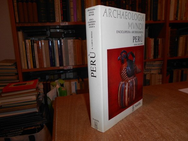 RAFAEL LARCO HOYLE. Roma, Edizioni Nagel, 1975. Archaeologia Mundi. PERU'. Traduzione di Marcella Mishra. In-8°, similpelle verde con titolo in oro al dorso, sovracopertina ill. a col. 254 pp. con 91 tavole a colori; 76 illustrazioni in bianco e nero. Come nuovo. Uff. stanzetta mob. a sinistra.