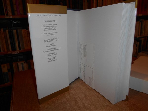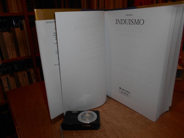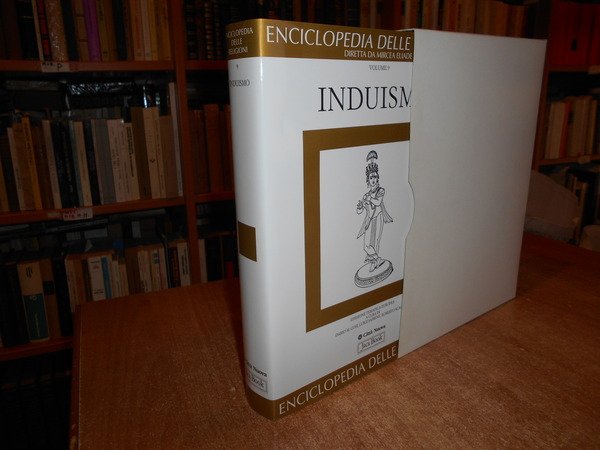 Diretta da Mircea Eliade. Milano/Roma, Jaca Book/Città Nuova, 2006. ENCICLOPEDIA DELLE RELIGIONI. INDUISMO Vol 9. In-4°, cartonato edit. azzurro con titoli e sovracopertina. viii, 507 pp. con alcune ill. n.t. Come nuovo con astuccio in cartoncino muto. Uff. stanzetta mob. a destra.