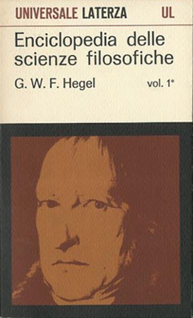 2 v. (XXXI, 600 p.) ; 18 x 11 cm. Universale Laterza, 57. L'«Enciclopedia delle scienze filosofiche in compendio» è l'opera definita come "la più compiuta formulazione del sistema di Hegel", conobbe una prima pubblicazione nel 1817, una seconda nel 1827 e una terza nel 1830 (nelle ultime due edizioni l'autore effettuò numerosi ampliamenti). L'opera è la sintesi più compiuta del sistema di Hegel, che aveva avuto il suo inizio con la pubblicazione della «Fenomenologia dello spirito» (1807), il cui sottotitolo era «Prima parte del sistema». In realtà l'opera era stata fornita da Hegel come «introduzione», per comprendere quale fosse il cammino che l'individuo (lo «spirito finito») compie per pervenire al «Sapere assoluto». Nell'opera Hegel tratta della coscienza, dell'autocoscienza, della ragione, dello spirito, della religione e del sapere assoluto, ossia della conoscenza dell'Assoluto (Dio). Titolo originale dell'opera: «Encyclopädie der philosophischen Wissenschaften im Grundrisse». Traduzione, prefazione e note di Benedetto Croce. Brossura editoriale, copertina in cartoncino flessibile, illustrata a colori. Codice libreria 7887.