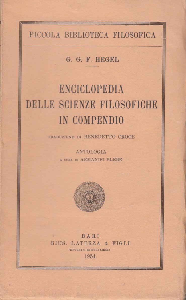 In-8 (Cm 20,5 x 12,5), pp. 193, brossura editoriale. Traduzione di Benedetto Croce, Antologia a cura di Armando Plebe. Collana Piccola Biblioteca Filosofica. OTTIMO