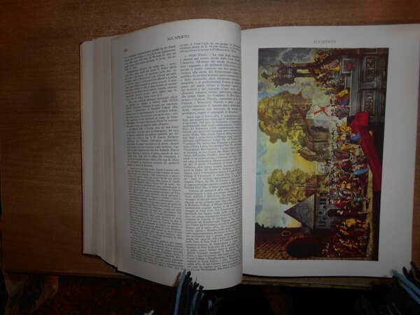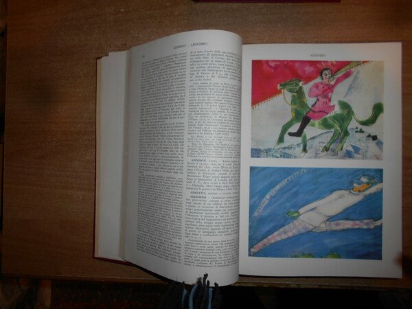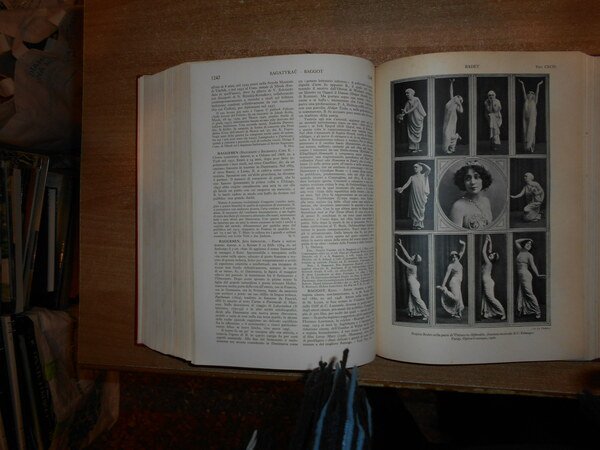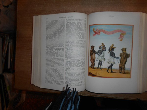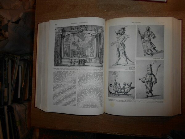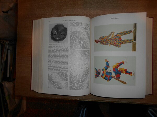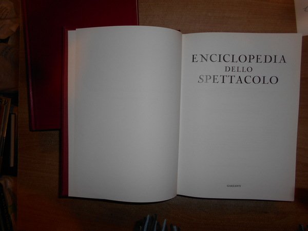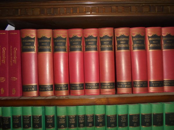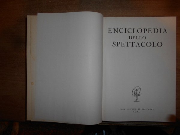 AA. VV. Enciclopedia dello Spettacolo. SILVIO D' AMICO. Roma, Casa Editrice Le Maschere, 1954/(1983 il dodicesimo volume). 12 volumi in-4°, tela bordeaux con titoli in oro ai dorsi. Catalogo dettagliato e preziosissimo per la consultazione anche a livello accademico, grazie alla razionalizzazione di una imponente mole di materiale che spazia dalla consultazione di opere reperibili solo tramite acquisti presso il mercato antiquario, integrate dall'acquisizione di archivi personali di professionisti e scrupolosissimi appassionati, è stato successivamente corredato di un decimo volume di aggiornamento, relativo agli anni 55/65, e da un undicesimo di "indici e repertorio".