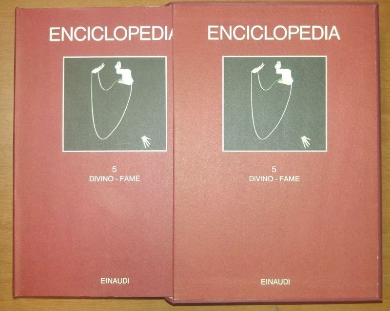 Solo il Volume 5 dell' enciclopedia Einaudi: da divino a fame. Einaudi Editore 1978. XIII + 1115 Pagine, Illustrazioni in bianco e nero e colori fuori testo. Copertina editoriale
